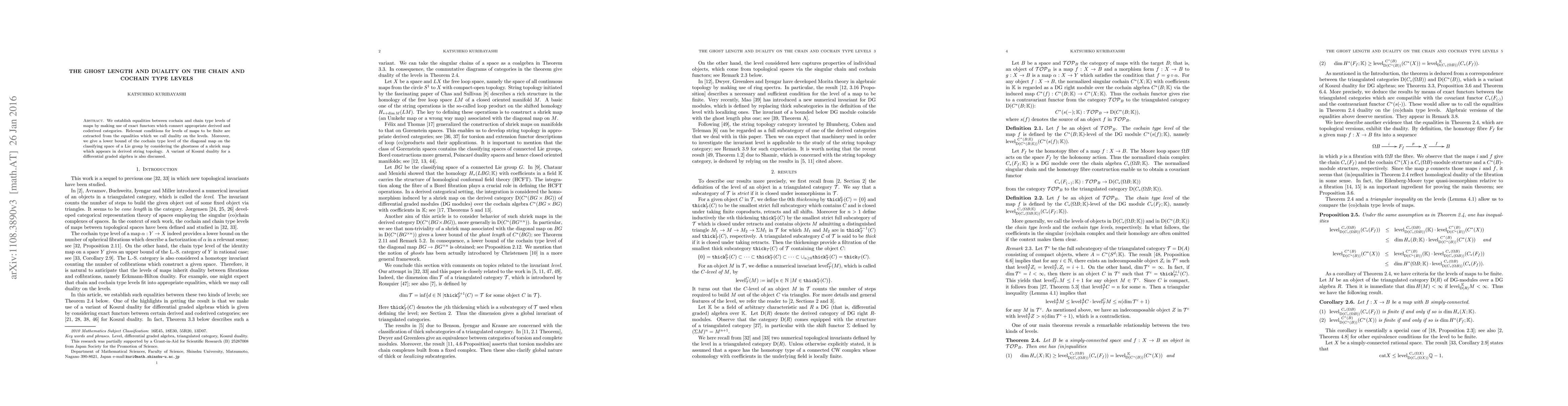 We establish equalities between cochain and chain type levels of maps by making use of exact functors which connect appropriate derived and coderived categories. Relevant conditions for levels of maps to be finite are extracted from the equalities which we call duality on the levels. Moreover, we give a lower bound of the cochain type level of the diagonal map on the classifying space of a Lie group by considering the ghostness of a shriek map which appears in derived string topology. A variant of Koszul duality for a differential graded algebra is also discussed.