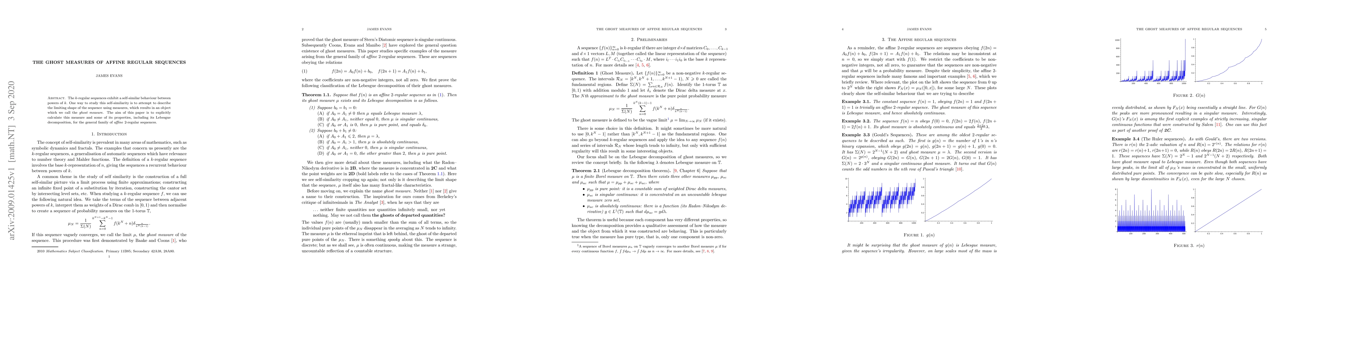 Researchers calculated the ghost measure of affine regular sequences, a self-similar object that describes their limiting behavior, and explored its properties for 2-regular sequences.