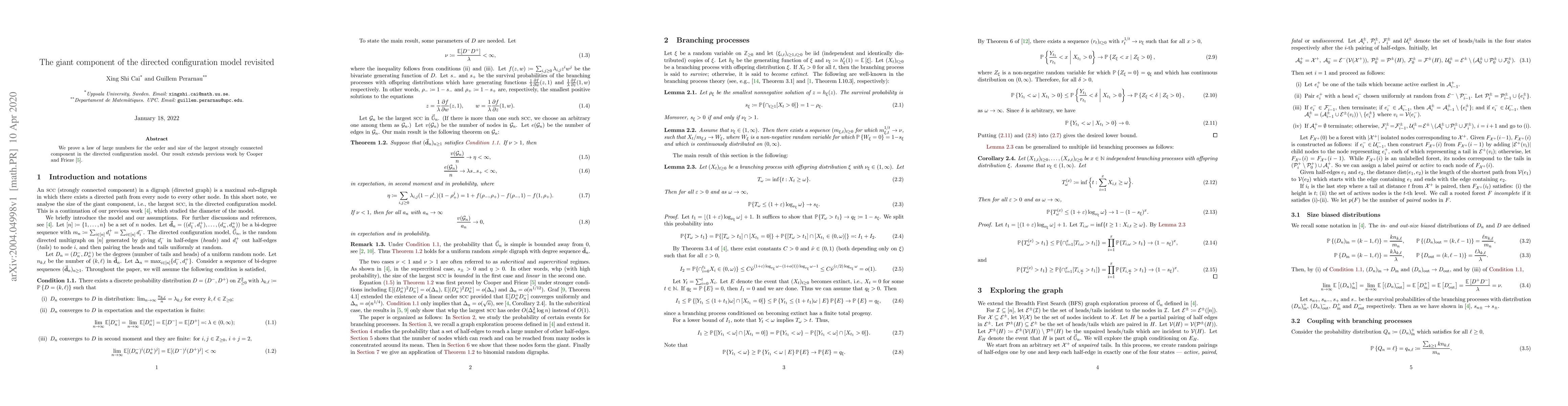 Summary: The paper establishes a law of large numbers for the size and order of the largest strongly connected component in the directed configuration model, extending previous results by Cooper and Frieze. This provides deeper insights into the structure of large directed networks.