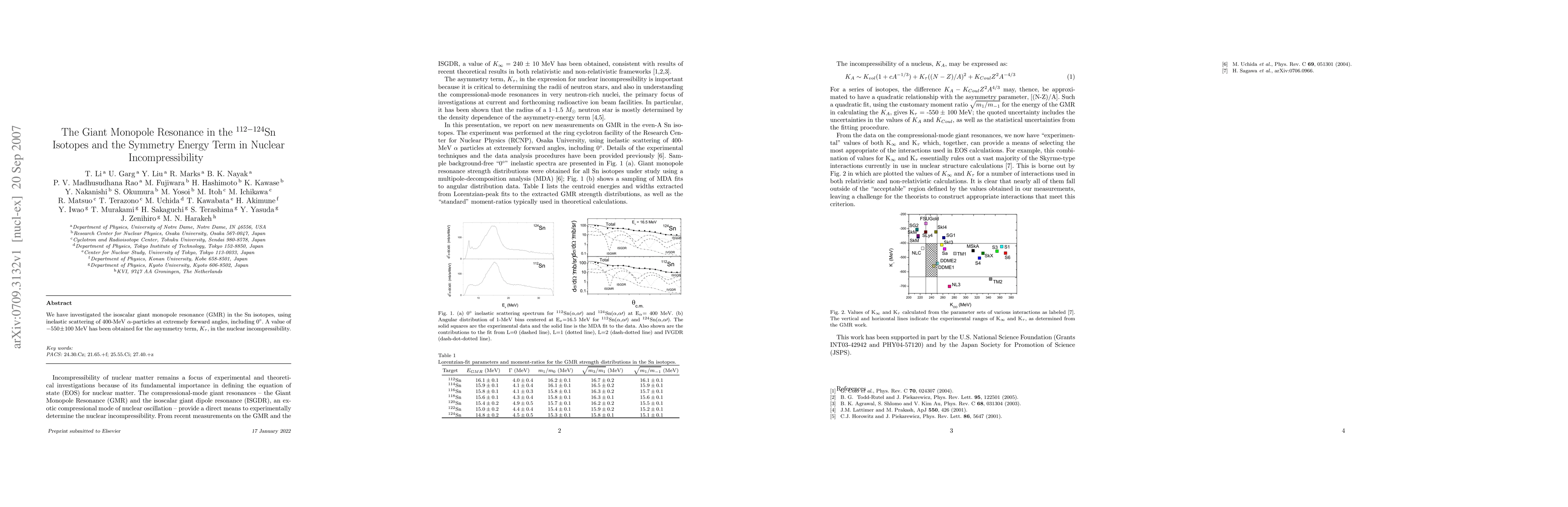 Summary: This study investigates the isoscalar giant monopole resonance in the $^{112-124}$Sn isotopes via high-energy $\alpha$-particle scattering, revealing a $K_\tau$ value of -550 ± 100 MeV, which informs the symmetry energy term in nuclear incompressibility.