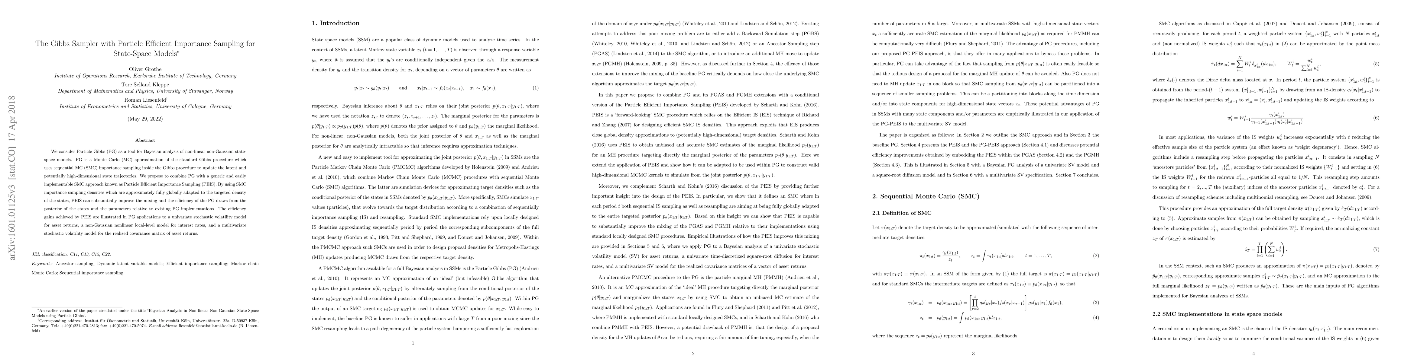 This paper proposes combining Particle Gibbs (PG) sampling with Particle Efficient Importance Sampling (PEIS) to enhance the efficiency of Bayesian analysis for non-linear non-Gaussian state-space models. The integration of PEIS improves the mixing and efficiency of PG draws, as demonstrated through applications to various financial and economic models.