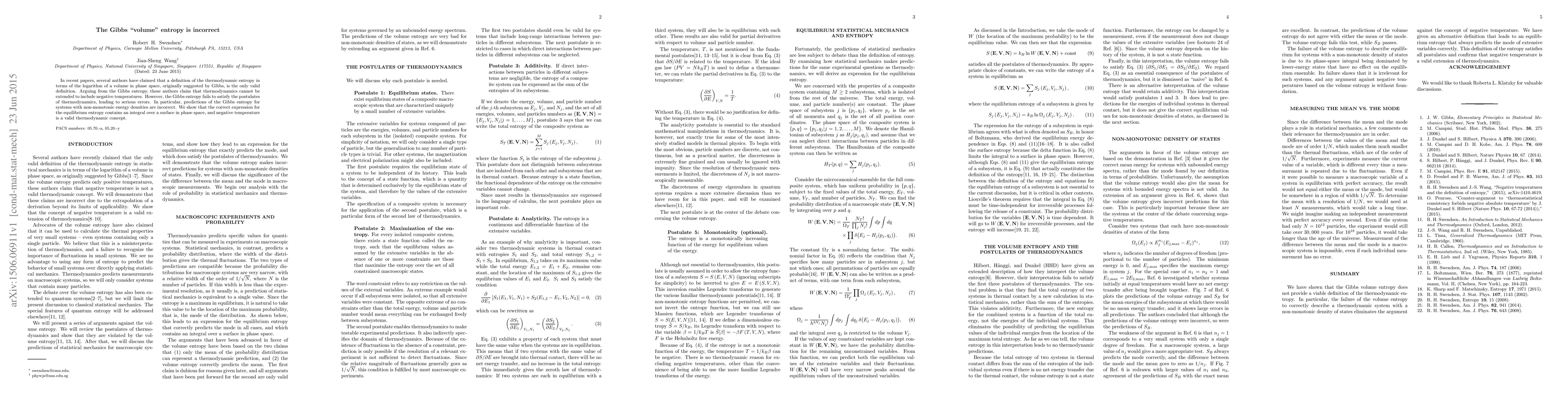 The Gibbs entropy definition, based on the logarithm of phase space volume, fails to satisfy thermodynamic postulates and leads to incorrect predictions for systems with non-monotonic energy densities. The correct entropy expression involves an integral over a phase space surface, allowing for the validity of negative temperatures.