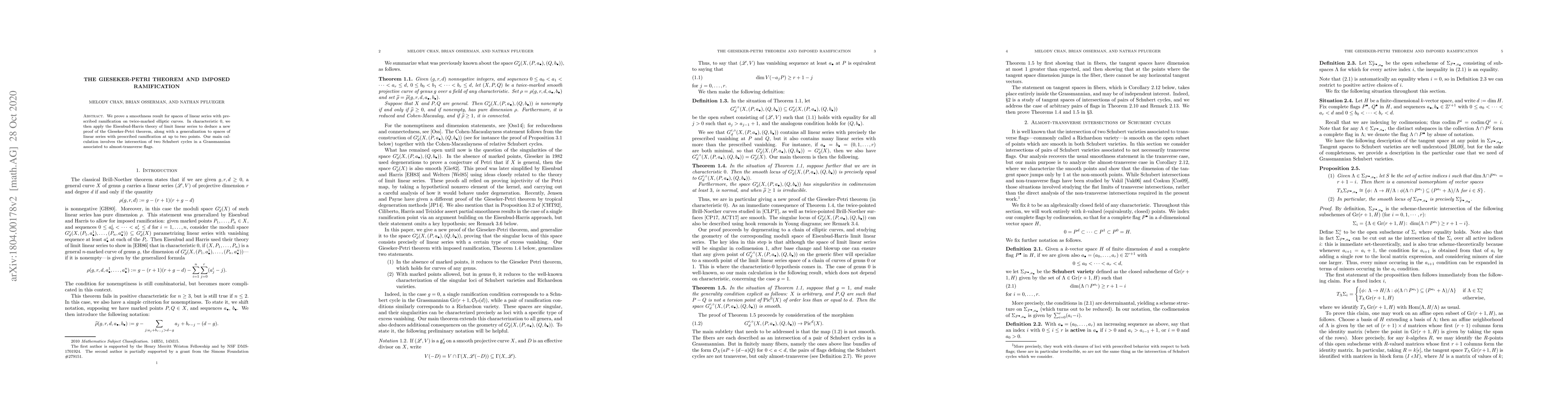 The work presents a fresh perspective on the Gieseker-Petri theorem by connecting it to limit linear series and Schubert cycles, offering a new proof method that generalizes to prescribed ramification at multiple points.