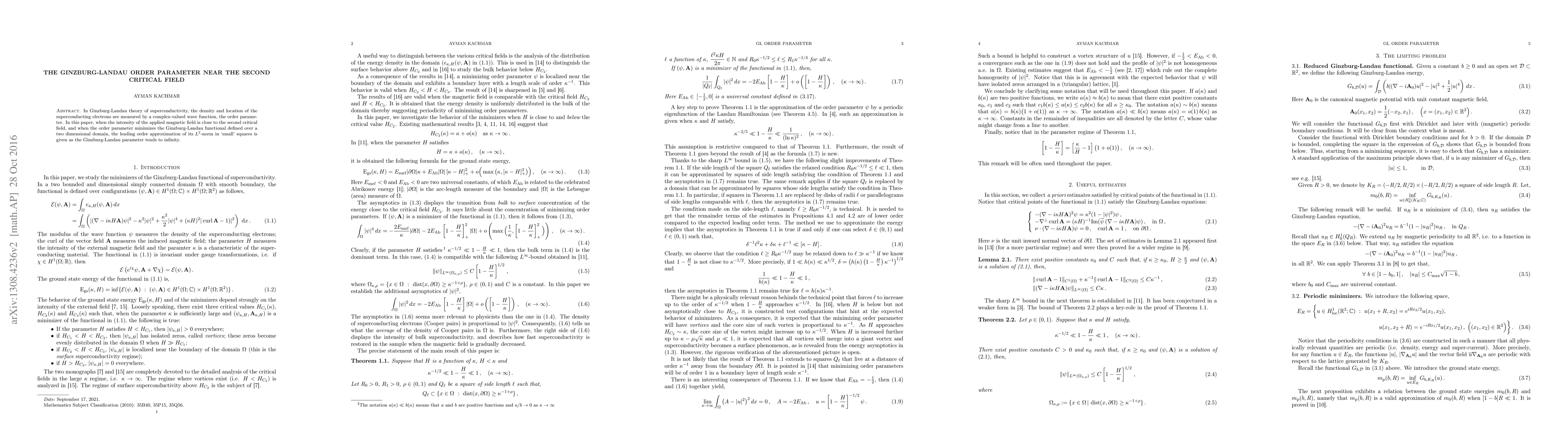 This paper investigates the behavior of the Ginzburg-Landau order parameter near the second critical magnetic field in superconductors, providing a leading order approximation of its $L^2$-norm in small squares as the Ginzburg-Landau parameter approaches infinity.