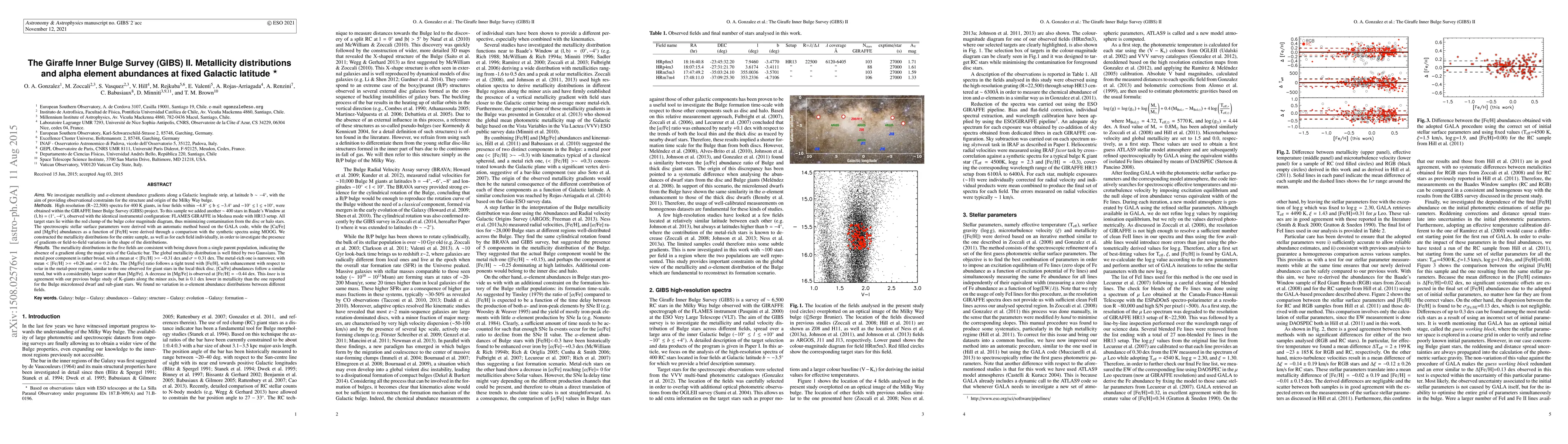The Giraffe Inner Bulge Survey (GIBS) II investigates metallicity distributions and alpha element abundances in red clump giants across the Galactic bulge. The study finds no significant metallicity gradient along the Galactic bar, with the global metallicity distribution fitting two Gaussians, and no variation in alpha-element abundances between fields.