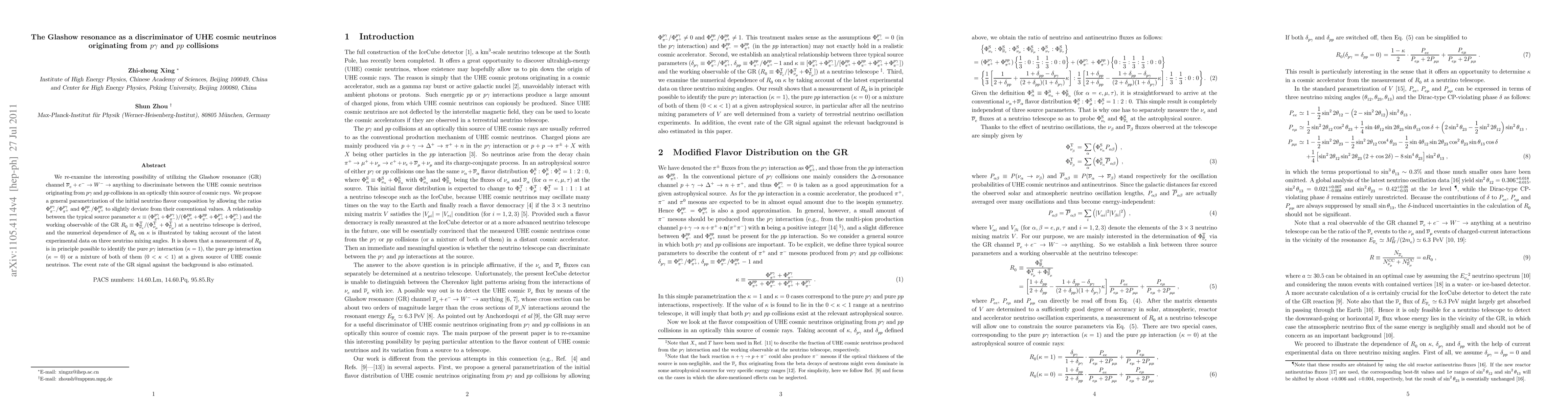 Researchers propose a method to distinguish between cosmic neutrinos from p-gamma and pp collisions using the Glashow resonance, a potential discriminator of UHE cosmic neutrinos.