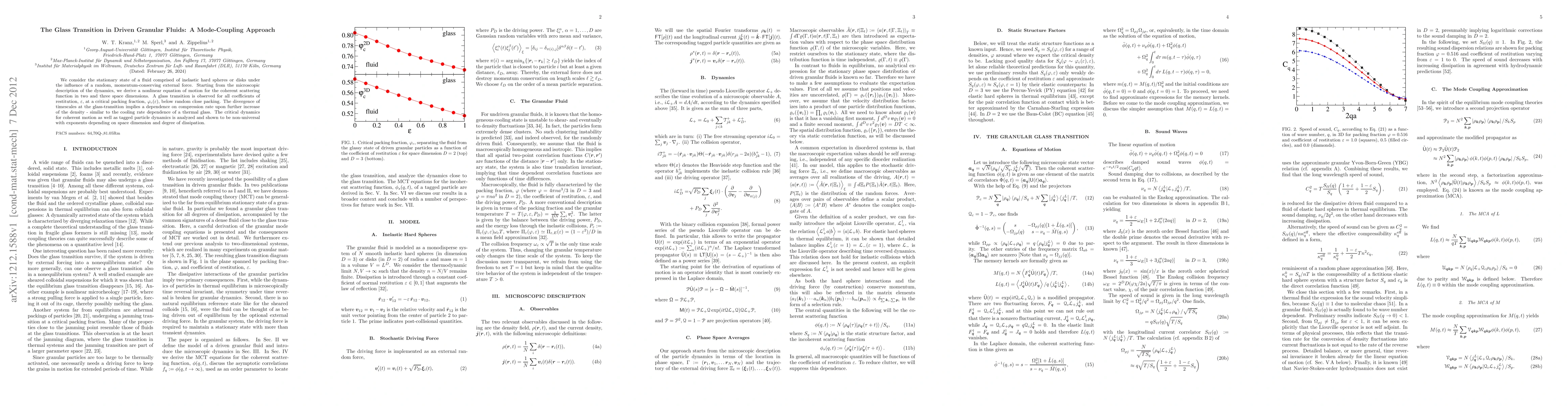The paper presents a detailed derivation of equations of motion for coherent and incoherent scattering functions in granular systems, extending mode-coupling theory to account for driving and dissipation.