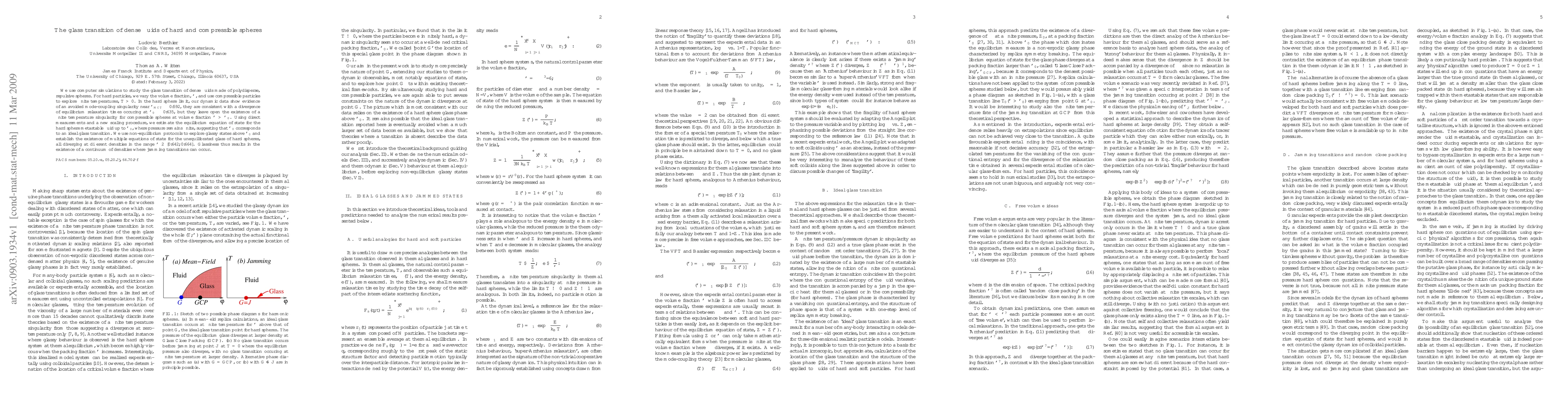 This paper investigates the glass transition in dense fluids of polydisperse, repulsive spheres using computer simulations. It finds evidence of an avoided mode-coupling singularity near a critical volume fraction, suggesting an ideal glass transition at a specific density, while also revealing multiple equations of state for the unequilibrated glass state.