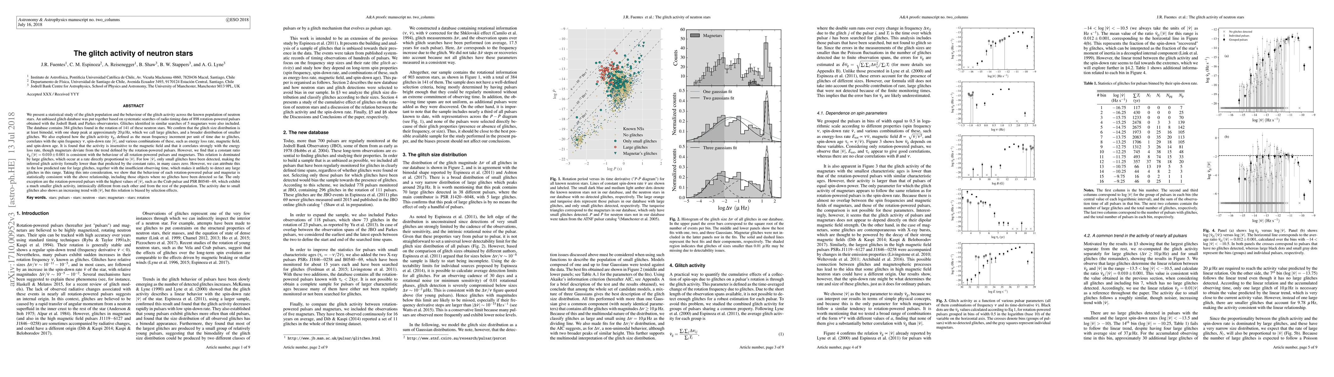 We present a statistical study of the glitch population and the behaviour of the glitch activity across the known population of neutron stars. An unbiased glitch database was put together based on systematic searches of radio timing data of 898 rotation-powered pulsars obtained with the Jodrell Bank and Parkes observatories. Glitches identified in similar searches of 5 magnetars were also included. The database contains 384 glitches found in the rotation of 141 of these neutron stars. We confirm that the glitch size distribution is at least bimodal, with one sharp peak at approximately $20\, \rm{\mu\,Hz}$, which we call large glitches, and a broader distribution of smaller glitches. We also explored how the glitch activity $\dot{\nu}_{\rm{g}}$, defined as the mean frequency increment per unit of time due to glitches, correlates with the spin frequency $\nu$, spin-down rate $|\dot{\nu}|$, and various combinations of these, such as energy loss rate, magnetic field, and spin-down age. It is found that the activity is insensitive to the magnetic field and that it correlates strongly with the energy loss rate, though magnetars deviate from the trend defined by the rotation-powered pulsars. However, we find that a constant ratio $\dot\nu_{\rm{g}}/|\dot\nu| = 0.010 \pm 0.001$ is consistent with the behaviour of all rotation-powered pulsars and magnetars. This relation is dominated by large glitches, which occur at a rate directly proportional to $|\dot{\nu}|$. The only exception are the rotation-powered pulsars with the highest values of $|\dot{\nu}|$, such as the Crab pulsar and PSR B0540$-$69, which exhibit a much smaller glitch activity, intrinsically different from each other and from the rest of the population. The activity due to small glitches also shows an increasing trend with $|\dot\nu|$, but this relation is biased by selection effects.
