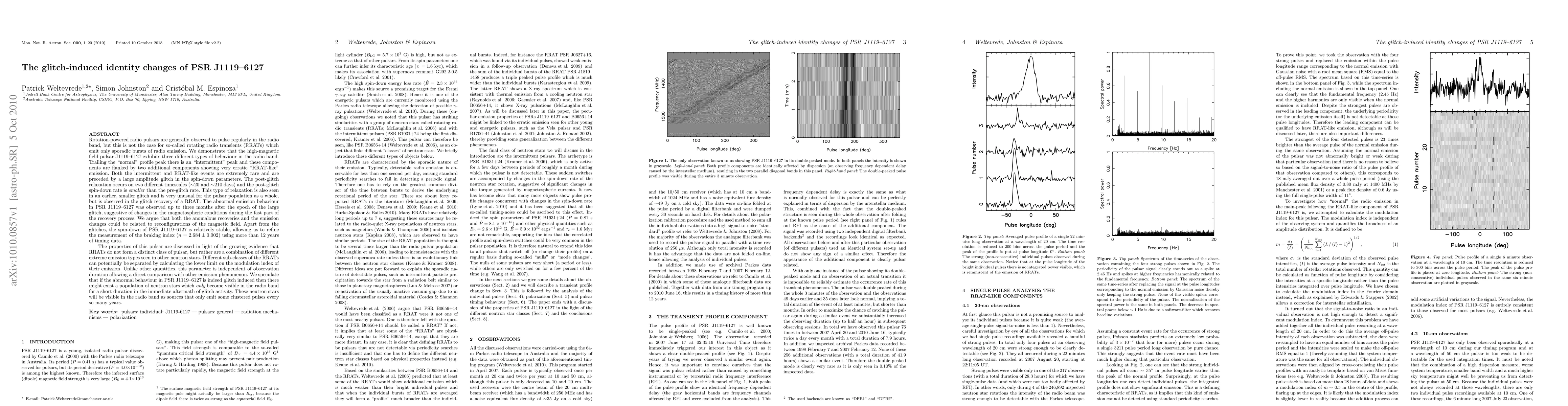 The high-magnetic field pulsar PSR J1119-6127 exhibits rare erratic radio emissions following large spin-glitches, suggesting magnetospheric reconfiguration. The pulsar's post-glitch spin-down rate stabilizes, refining the braking index measurement over 12 years of data.