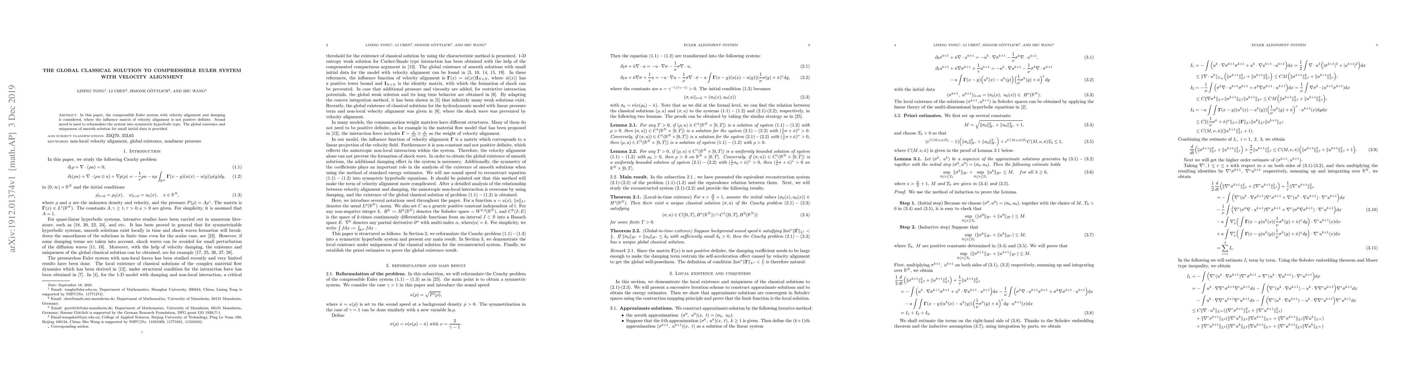 The paper develops novel a priori estimates and applies advanced mathematical techniques to prove global existence and uniqueness for the compressible Euler system with velocity alignment and damping.