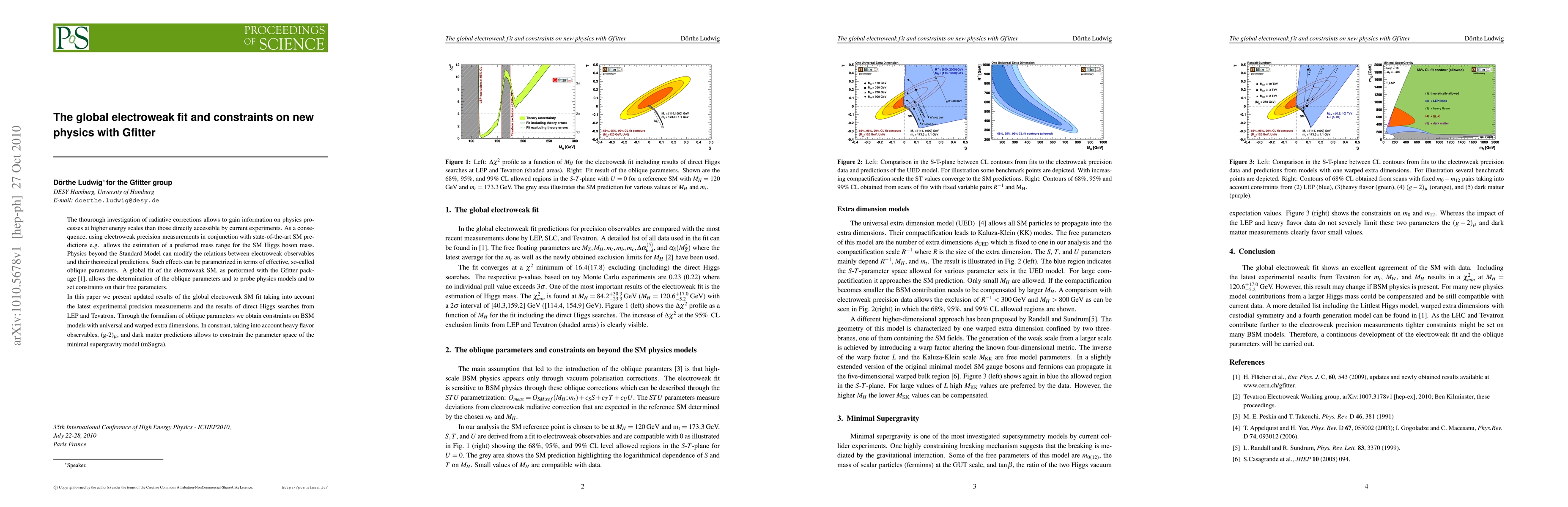 This paper presents updated results from a global electroweak Standard Model (SM) fit using Gfitter, incorporating the latest experimental precision measurements and direct Higgs search results. It sets constraints on physics beyond the Standard Model, particularly for universal and warped extra dimensions, and the minimal supergravity model using oblique parameters and heavy flavor observables.