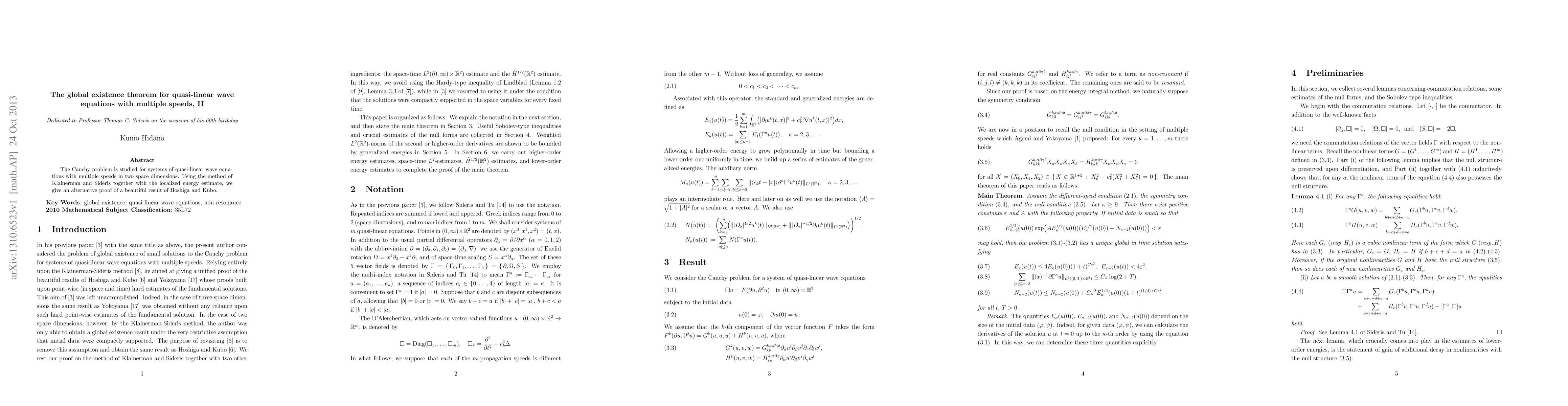 The Cauchy problem is studied for systems of quasi-linear wave equations with multiple speeds in two space dimensions. Using the method of Klainerman and Sideris together with the localized energy estimate, we give an alternative proof of a beautiful result of Hoshiga and Kubo.