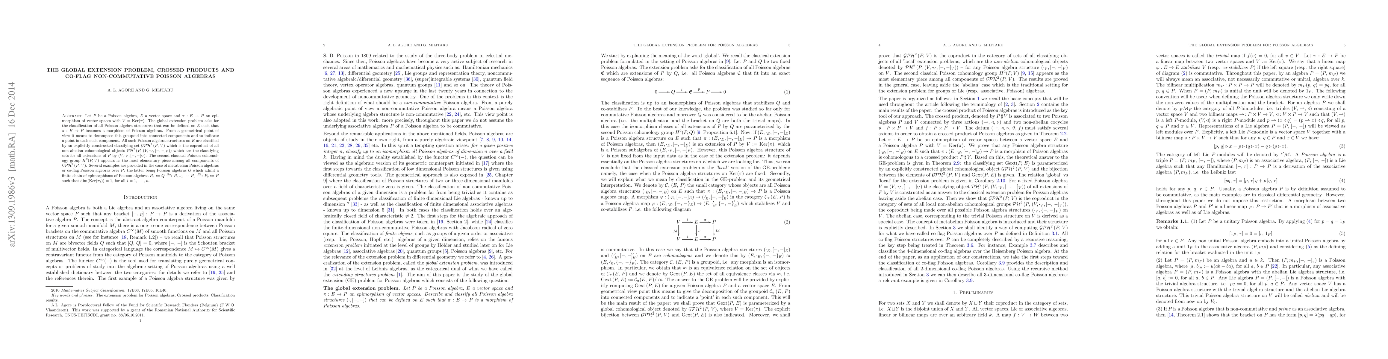 Let $P$ be a Poisson algebra, $E$ a vector space and $\pi : E \to P$ an epimorphism of vector spaces with $V = {\rm Ker} (\pi)$. The global extension problem asks for the classification of all Poisson algebra structures that can be defined on $E$ such that $\pi : E \to P$ becomes a morphism of Poisson algebras. From a geometrical point of view it means to decompose this groupoid into connected components and to indicate a point in each such component. All such Poisson algebra structures on $E$ are classified by an explicitly constructed classifying set ${\mathcal G} {\mathcal P} {\mathcal H}^{2} \, (P, \, V)$ which is the coproduct of all non-abelian cohomological objects ${\mathcal P} {\mathcal H}^{2} \, (P, \, (V, \cdot_V, [-,-]_V))$ which are the classifying sets for all extensions of $P$ by $(V, \cdot_V, [-,-]_V)$. The second classical Poisson cohomology group $H^2 (P, V)$ appears as the most elementary piece among all components of ${\mathcal G} {\mathcal P} {\mathcal H}^{2} \, (P, \, V)$. Several examples are provided in the case of metabelian Poisson algebras or co-flag Poisson algebras over $P$: the latter being Poisson algebras $Q$ which admit a finite chain of epimorphisms of Poisson algebras $P_n : = Q \stackrel{\pi_{n}}{\longrightarrow} P_{n-1} \, \cdots \, P_1 \stackrel{\pi_{1}} {\longrightarrow} P_{0} := P$ such that ${\rm dim} ( {\rm Ker} (\pi_{i}) ) = 1$, for all $i = 1, \cdots, n$.