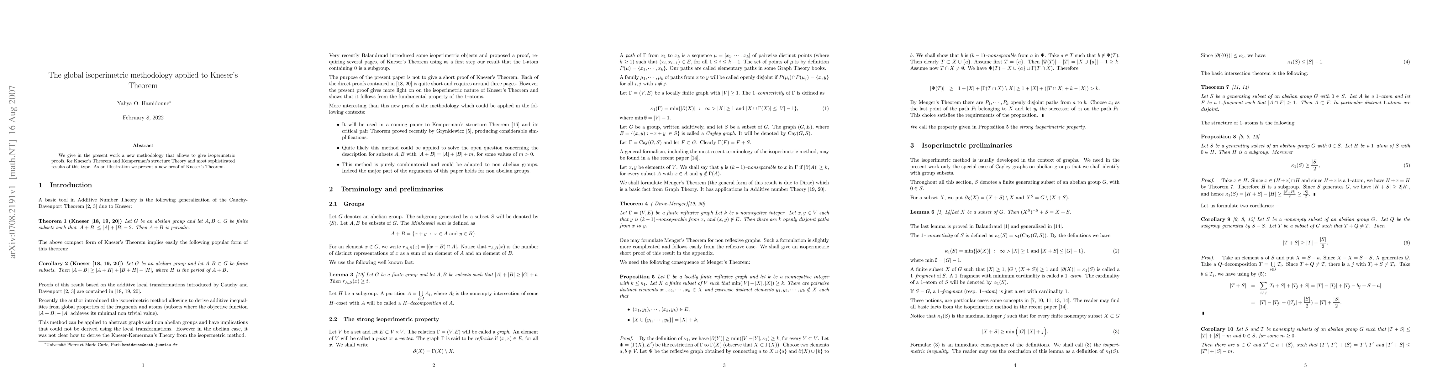 Researchers develop a new methodology to prove Kneser's Theorem using isoperimetric proofs, providing a clear path for proving complex results in combinatorial geometry.