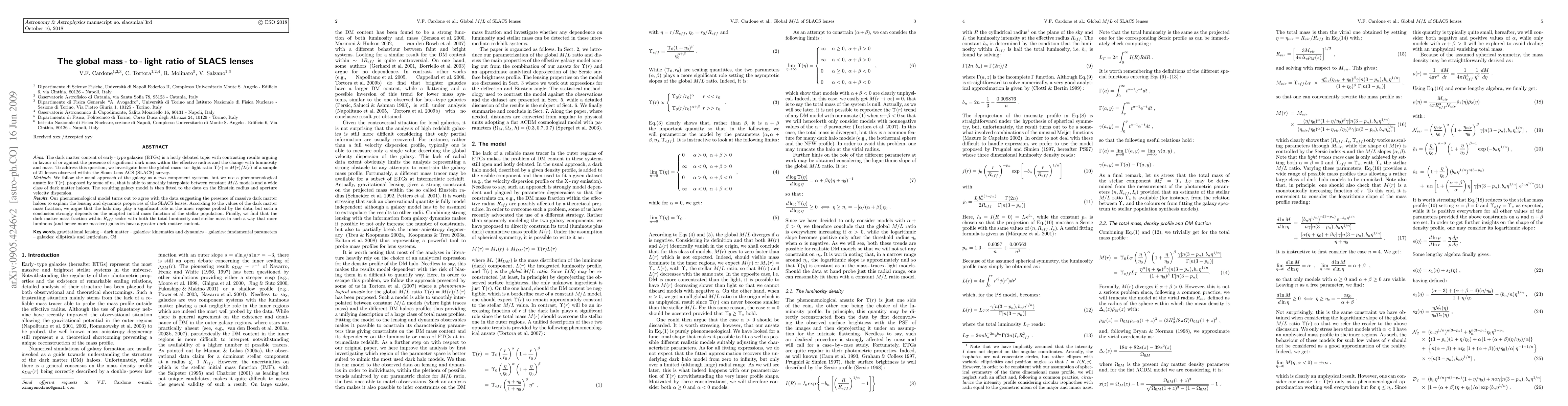 The paper introduces a flexible phenomenological ansatz for the global mass-to-light ratio of ETGs, allowing for a smooth interpolation between constant $M/L$ models and various dark matter halo profiles, and applies it to the SLACS lens sample.