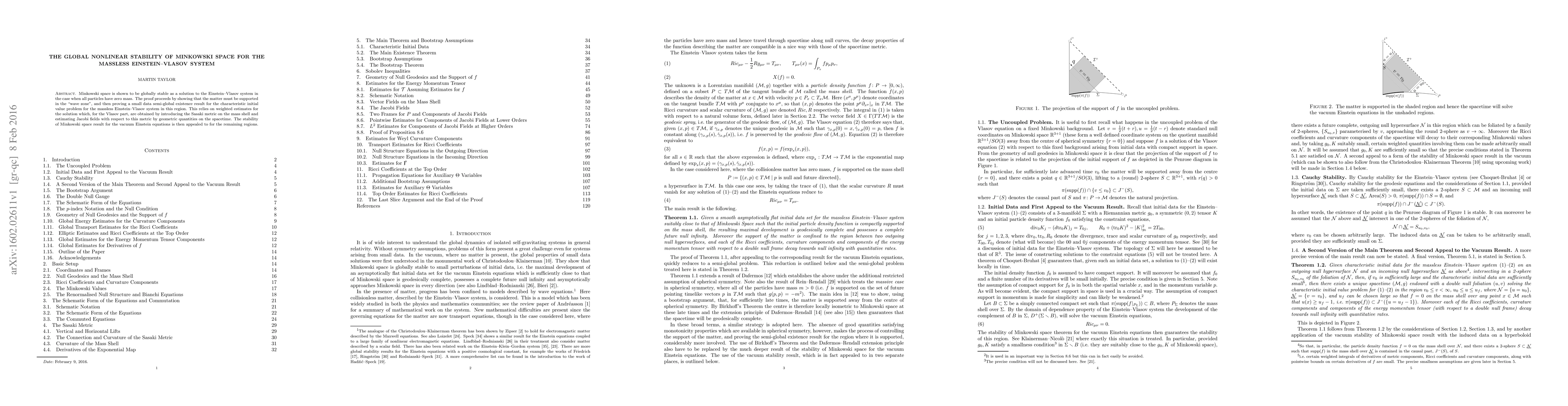 This paper demonstrates the global nonlinear stability of Minkowski space in the massless Einstein-Vlasov system by proving small data semi-global existence and utilizing weighted estimates, particularly on the Sasaki metric, to manage the Vlasov part. The stability is supported by the vacuum Einstein equations in other regions.