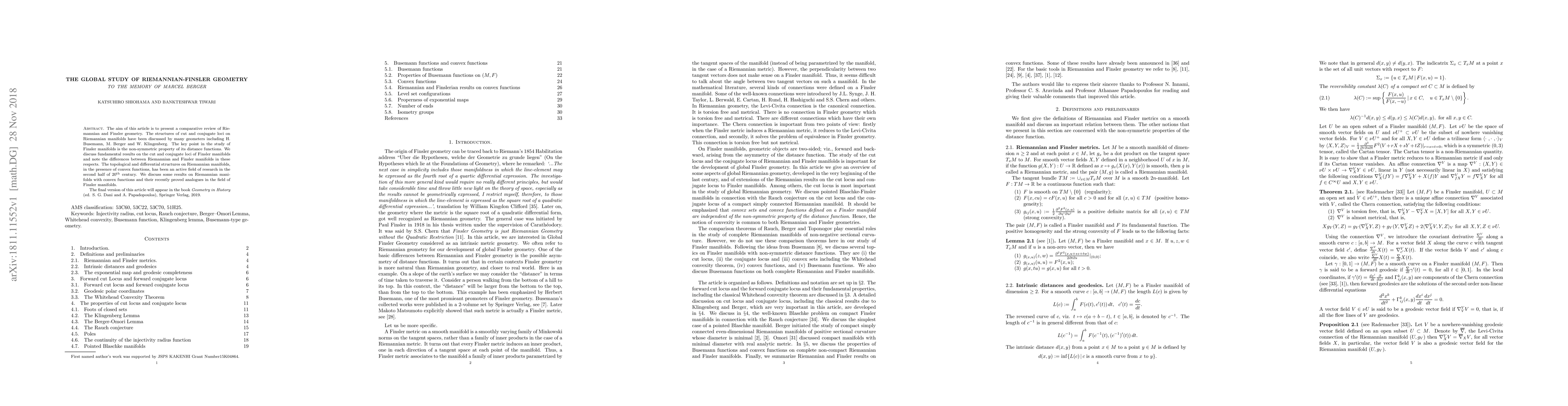 This paper provides a comparative review of Riemannian and Finsler geometry, focusing on the structures of cut and conjugate loci. It highlights the differences in the non-symmetric properties of distance functions in Finsler manifolds compared to Riemannian manifolds, and discusses recent results on convex functions in both fields.