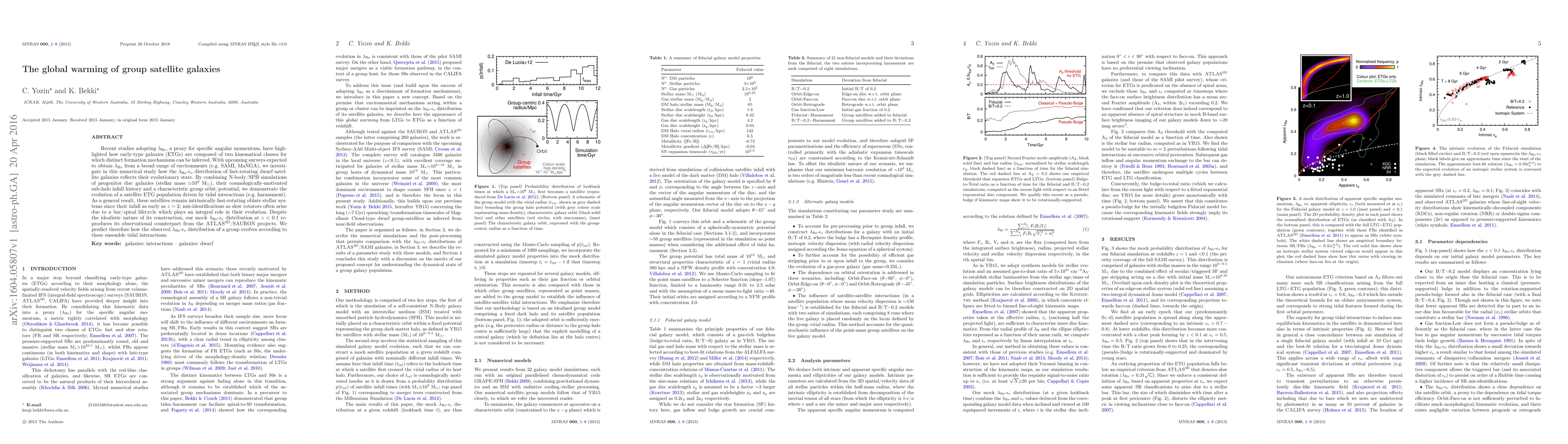 Recent studies adopting $\lambda_{\rm Re}$, a proxy for specific angular momentum, have highlighted how early-type galaxies (ETGs) are composed of two kinematic classes for which distinct formation mechanisms can be inferred. With upcoming surveys expected to obtain $\lambda_{\rm Re}$ from a broad range of environments (e.g. SAMI, MaNGA), we investigate in this numerical study how the $\lambda_{\rm Re}$-$\epsilon_{\rm e}$ distribution of fast-rotating dwarf satellite galaxies reflects their evolutionary state. By combining N-body/SPH simulations of progenitor disc galaxies (stellar mass $\simeq$10$^{\rm 9}$ M$_{\odot}$), their cosmologically-motivated sub-halo infall history and a characteristic group orbit/potential, we demonstrate the evolution of a satellite ETG population driven by tidal interactions (e.g. harassment). As a general result, these satellites remain intrinsically fast-rotating oblate stellar systems since their infall as early as $z=2$; mis-identifications as slow rotators often arise due to a bar/spiral lifecycle which plays an integral role in their evolution. Despite the idealistic nature of its construction, our mock $\lambda_{\rm Re}$-$\epsilon_{\rm e}$ distribution at $z<0.1$ reproduces its observational counterpart from the ATLAS$^{\rm 3D}$/SAURON projects. We predict therefore how the observed $\lambda_{\rm Re}$-$\epsilon_{\rm e}$ distribution of a group evolves according to these ensemble tidal interactions.