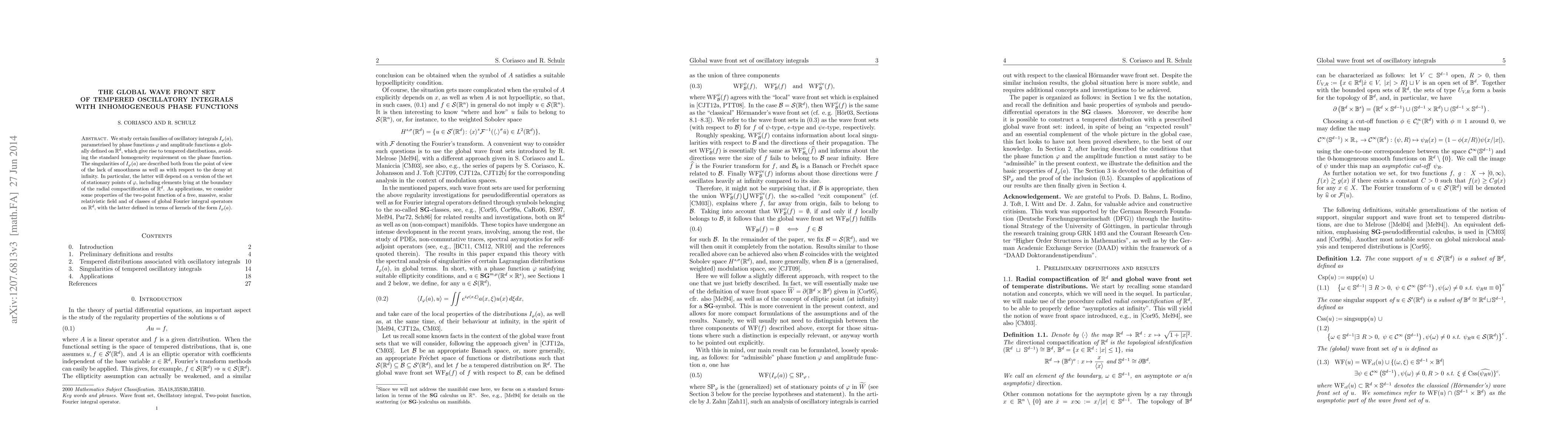 This paper investigates oscillatory integrals $I_\varphi(a)$ without the usual homogeneity requirement on phase functions, focusing on their singularities and decay properties. Applications include properties of the two-point function of a free, massive, scalar relativistic field and global Fourier integral operators.
