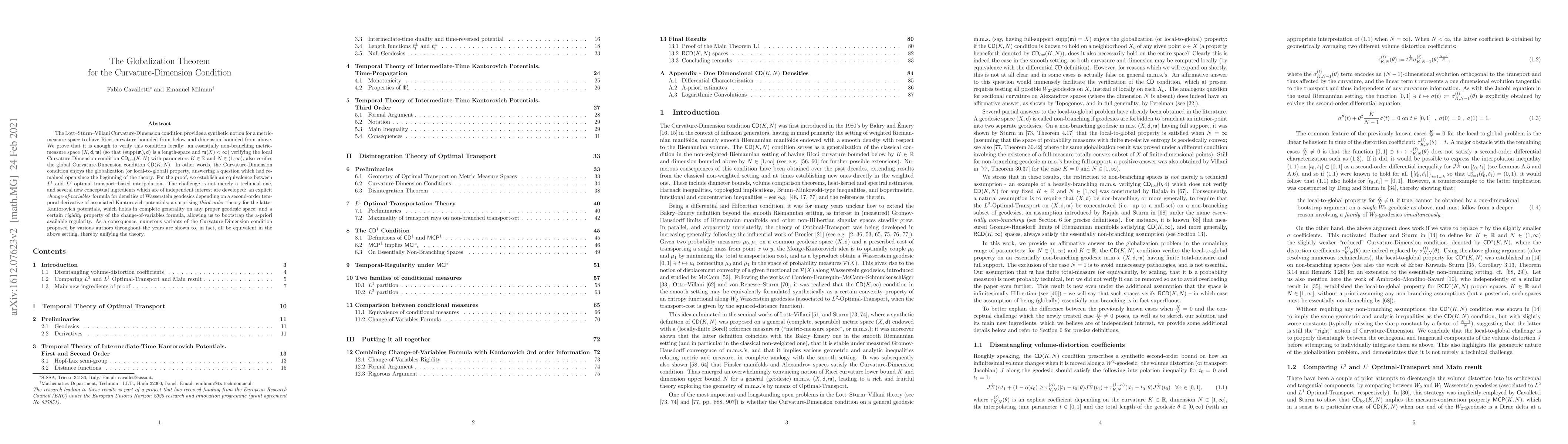 This paper proves the globalization theorem for the Lott-Sturm-Villani Curvature-Dimension condition, showing that verifying the condition locally implies its validity globally. The proof also introduces new conceptual tools, including a change-of-variables formula for Wasserstein geodesics and a third-order theory for Kantorovich potentials, which unify various proposed variants of the condition.