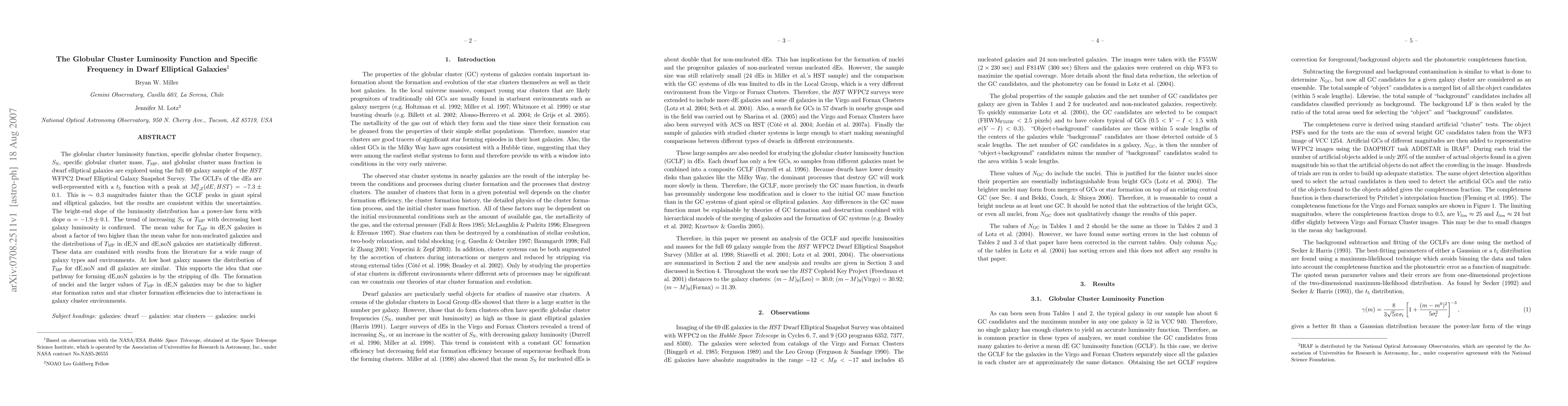 This study investigates the globular cluster luminosity function and specific frequency in dwarf elliptical galaxies using the HST WFPC2 survey, finding a GCLF peak fainter than in larger galaxies. It confirms a trend of increasing specific globular cluster mass with decreasing galaxy luminosity, supporting the stripping of dwarf irregular galaxies as a pathway for forming dwarf ellipticals without nuclei.