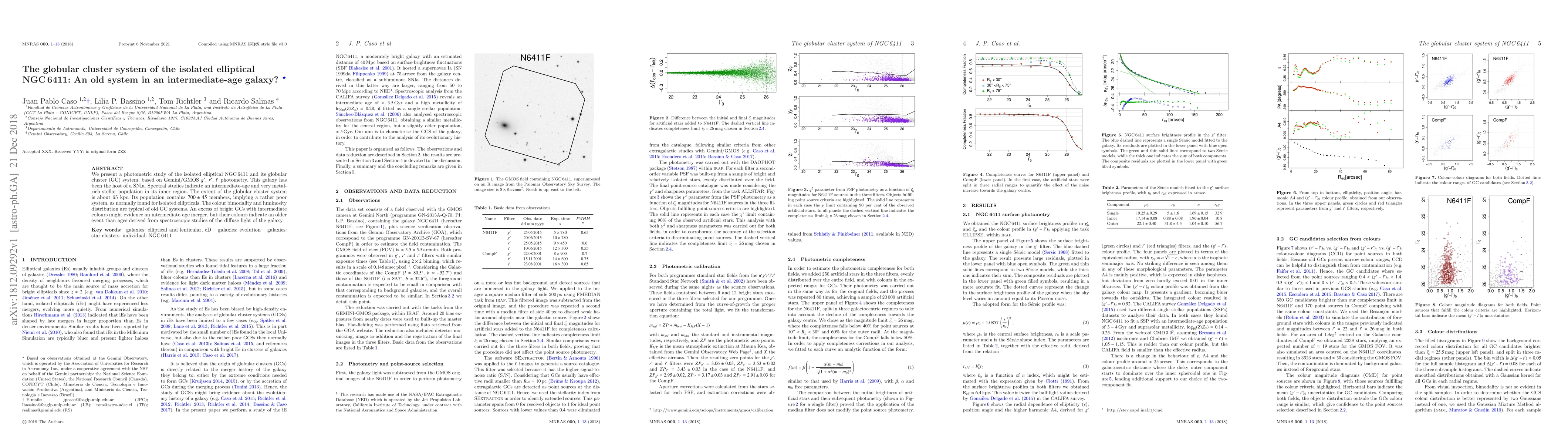 We present a photometric study of the isolated elliptical NGC 6411 and its globular cluster (GC) system, based on Gemini/GMOS g', r', i' photometry. This galaxy has been the host of a SNIa. Spectral studies indicate an intermediate-age and very metal-rich stellar population in its inner region. The extent of the globular cluster system is about 65 kpc. Its population contains $700\pm45$ members, implying a rather poor system, as normally found for isolated ellipticals. The colour bimodality and luminosity distribution are typical of old GC systems. An excess of bright GCs with intermediate colours might evidence an intermediate-age merger, but their colours indicate an older event than ages derived from spectroscopic studies of the diffuse light of the galaxy.
