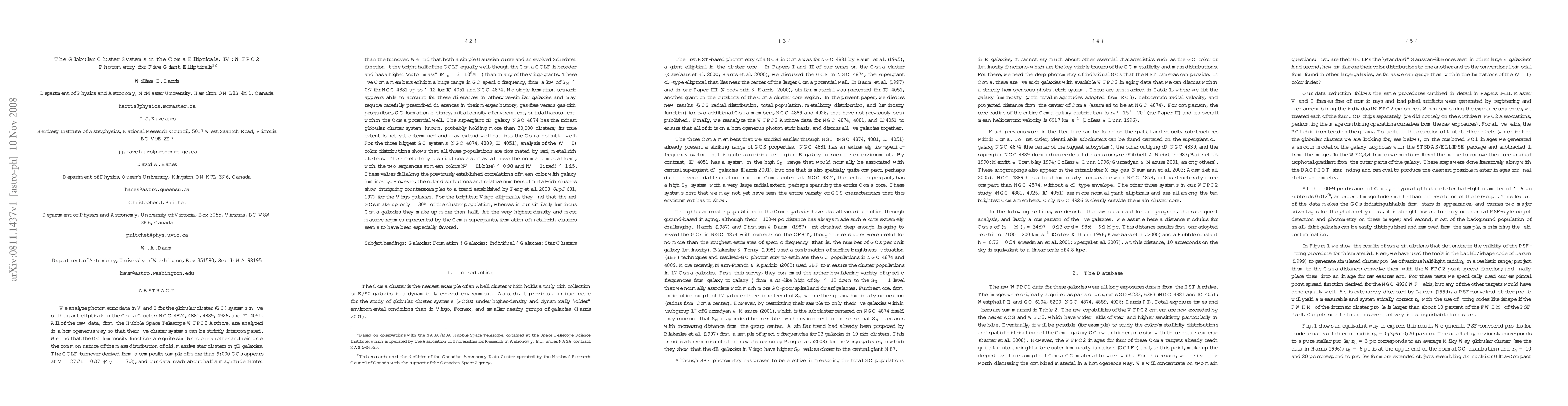 into the Coma potential well. For the three biggest GC systems (NGC 4874, 4889,