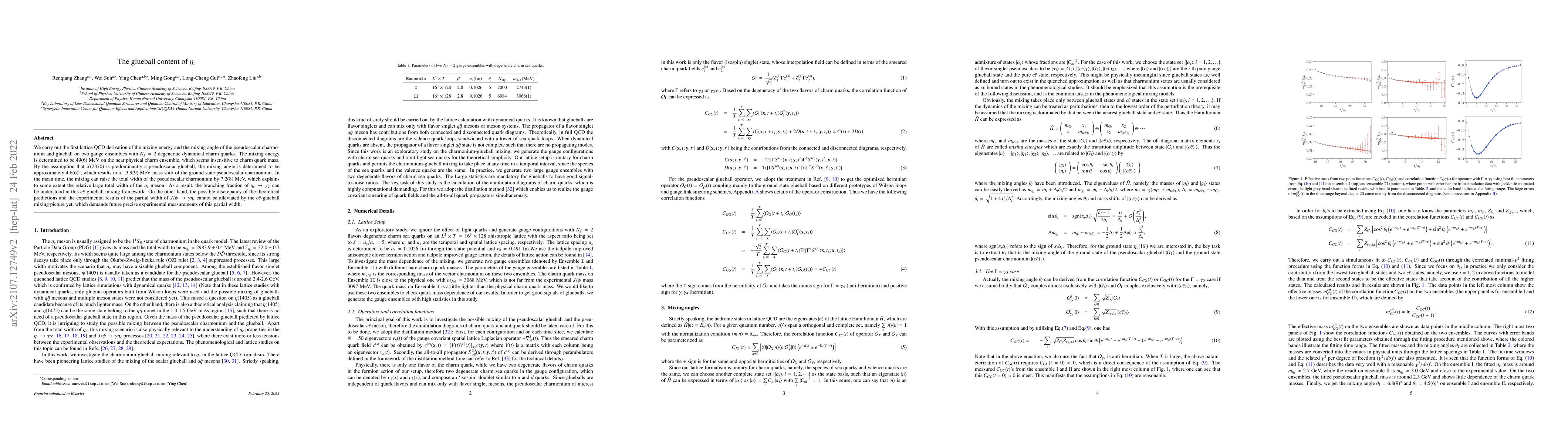 This study presents the first lattice QCD analysis of the mixing between the pseudoscalar charmonium $\eta_c$ and a glueball, determining a mixing energy of $49(6)$ MeV and a mixing angle of $4.6(6)^\circ$. The findings suggest a $+3.9(9)$ MeV mass shift and a 7.2(8) MeV increase in the total width of $\eta_c$, partially explaining its large width.