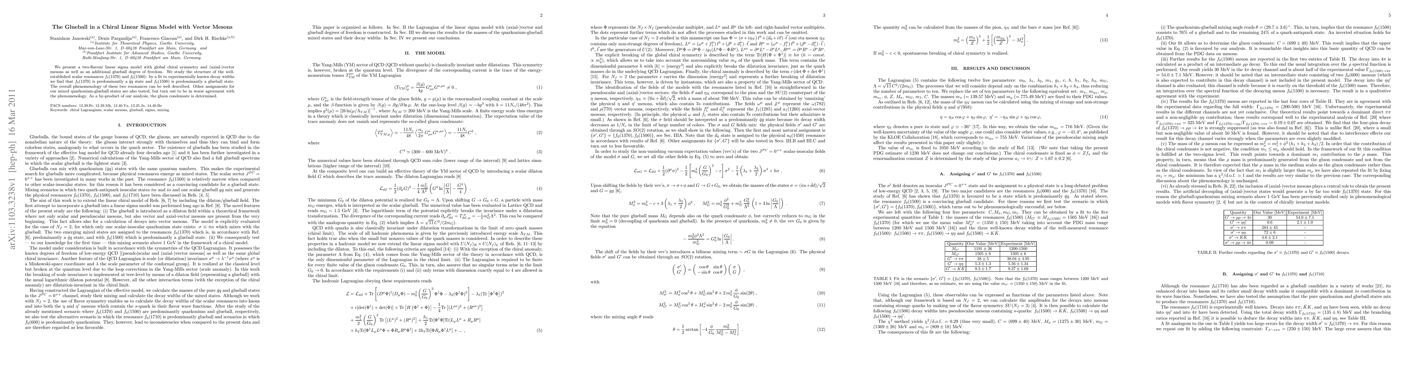 This paper investigates a two-flavour chiral linear sigma model incorporating vector mesons and a glueball, finding that f0(1370) is mainly a quark-antiquark state while f0(1500) is predominantly a glueball. The model successfully describes the phenomenology of these resonances and determines the gluon condensate as a by-product.