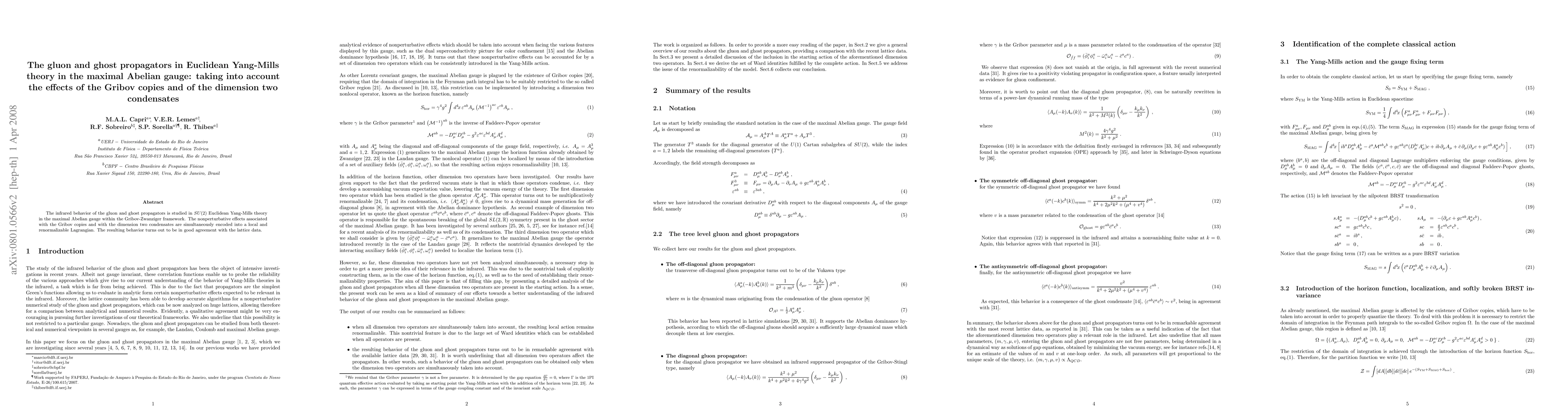 Summary: This study investigates the infrared behavior of gluon and ghost propagators in SU(2) Euclidean Yang-Mills theory using the maximal Abelian gauge, incorporating nonperturbative effects from Gribov copies and dimension two condensates via a renormalizable Lagrangian, yielding results consistent with lattice data.
