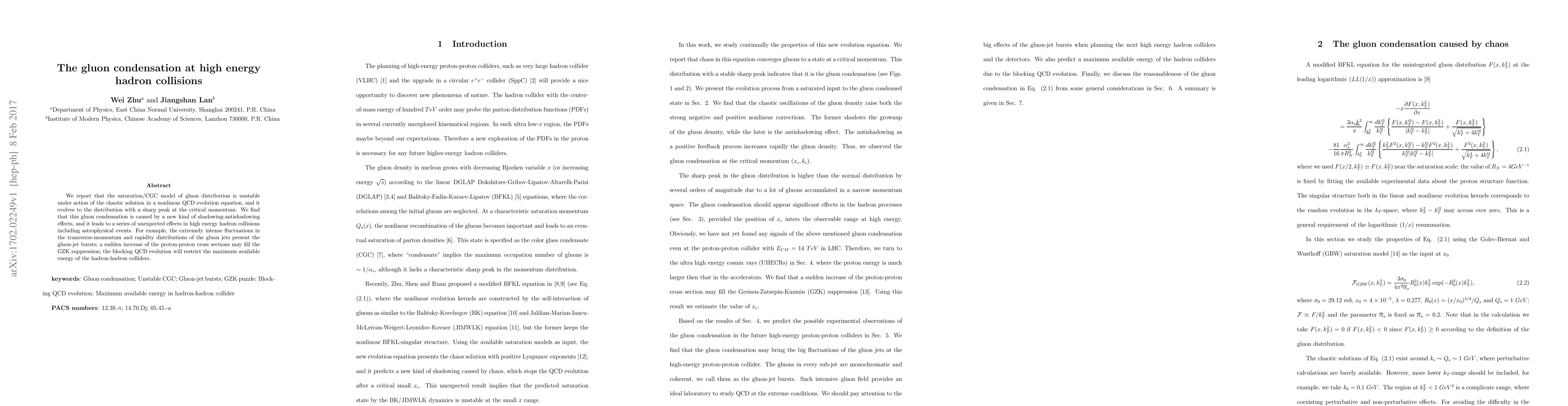 We report that the saturation/CGC model of gluon distribution is unstable under action of the chaotic solution in a nonlinear QCD evolution equation, and it evolves to the distribution with a sharp peak at the critical momentum. We find that this gluon condensation is caused by a new kind of shadowing-antishadowing effects, and it leads to a series of unexpected effects in high energy hadron collisions including astrophysical events. For example, the extremely intense fluctuations in the transverse-momentum and rapidity distributions of the gluon jets present the gluon-jet bursts; a sudden increase of the proton-proton cross sections may fill the GZK suppression; the blocking QCD evolution will restrict the maximum available energy of the hadron-hadron colliders.