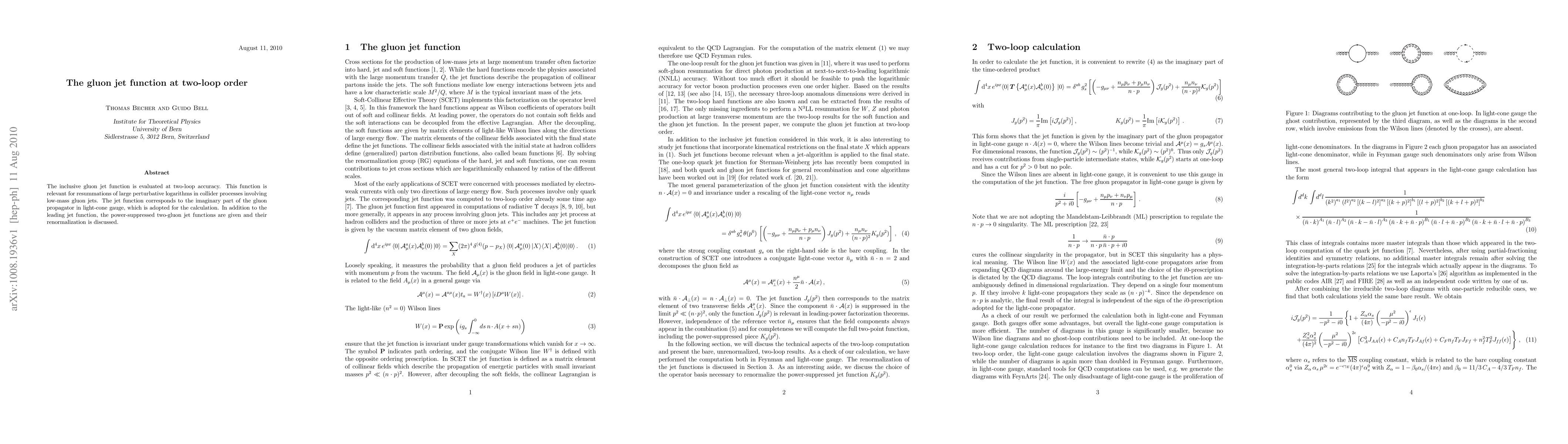 This paper evaluates the inclusive gluon jet function at two-loop accuracy, crucial for resummations in collider processes with low-mass gluon jets. It also discusses the renormalization of the leading and power-suppressed two-gluon jet functions.