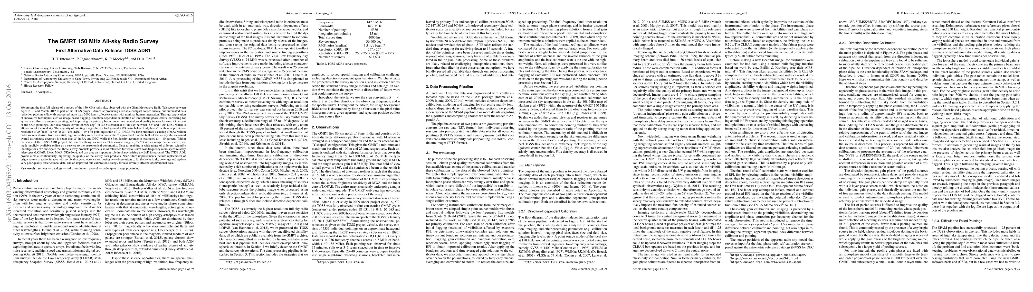 The GMRT 150 MHz All-sky Radio Survey (TGSS ADR1) presents a comprehensive catalog of 0.62 million radio sources, derived from observations between 2010 and 2012. The survey covers 90% of the sky with high-quality images, enabling diverse scientific investigations and serving as a reference for upcoming low-frequency telescopes.