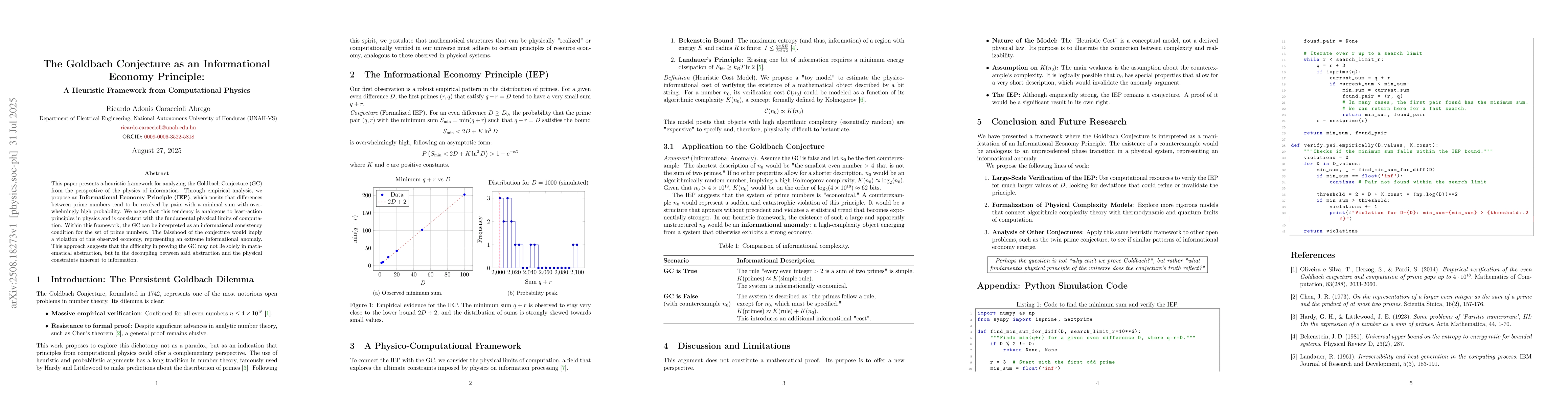 This paper presents a heuristic framework for analyzing the Goldbach Conjecture (GC) from the perspective of the physics of information. Through empirical analysis, we propose an Informational Economy Principle (IEP), which posits that differences between prime numbers tend to be resolved by pairs with a minimal sum with overwhelmingly high probability. We argue that this tendency is analogous to least-action principles in physics and is consistent with the fundamental physical limits of computation. Within this framework, the GC can be interpreted as an informational consistency condition for the set of prime numbers. The falsehood of the conjecture would imply a violation of this observed economy, representing an extreme informational anomaly. This approach suggests that the difficulty in proving the GC may not lie solely in mathematical abstraction, but in the decoupling between said abstraction and the physical constraints inherent to information.