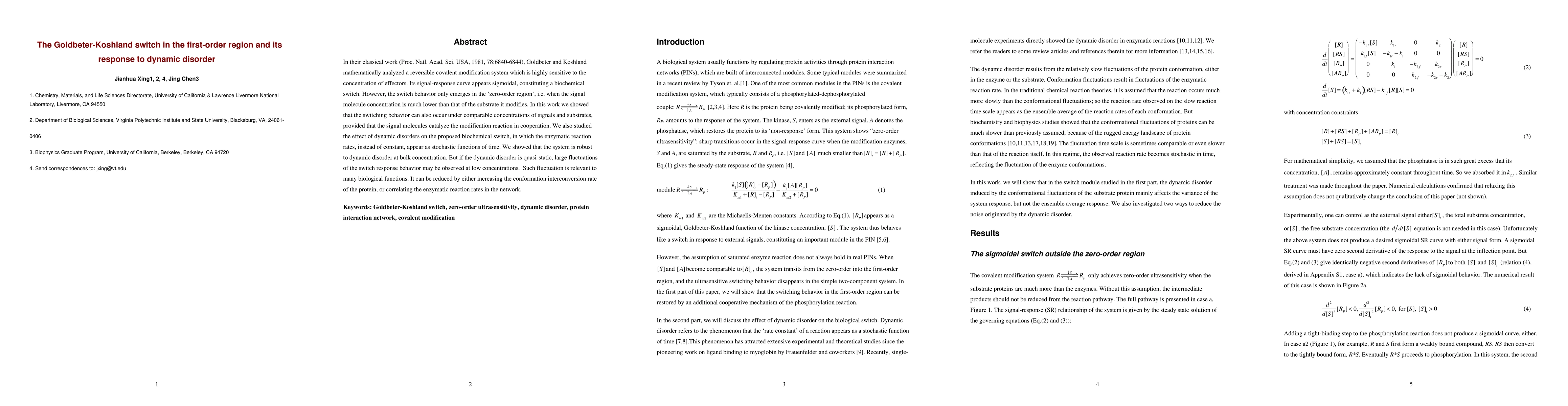Researchers found that a biochemical switch can occur when signal molecules catalyze modification reactions in cooperation with substrates, allowing switching behavior at comparable concentrations. They also showed that the system is robust to dynamic disorder but may exhibit fluctuations at low concentrations.