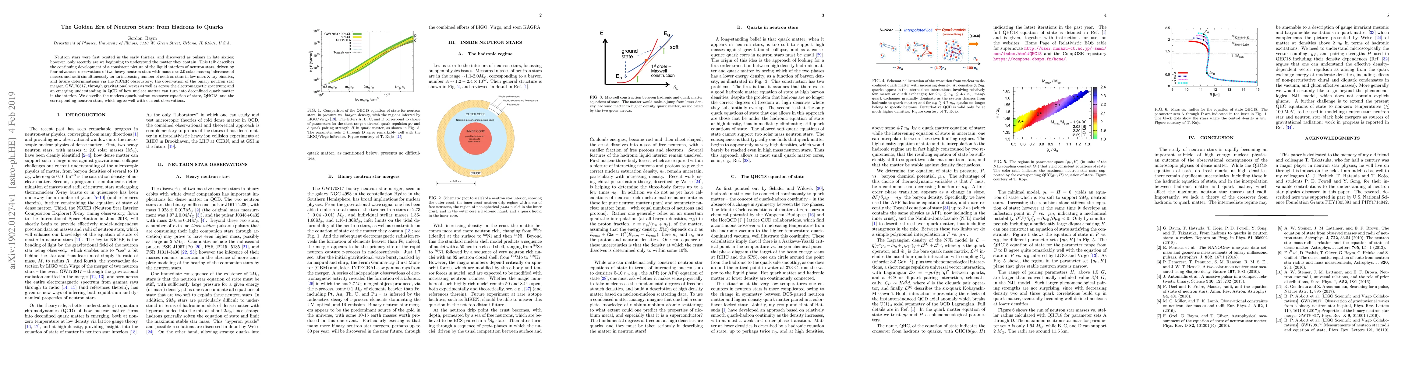 The paper discusses the recent advancements in understanding neutron star interiors, driven by observations of massive neutron stars, simultaneous mass and radius inferences, the binary neutron star merger GW170817, and progress in QCD. A modern quark-hadron crossover equation of state, QHC18, is presented, which accurately describes neutron stars and aligns with current observations.