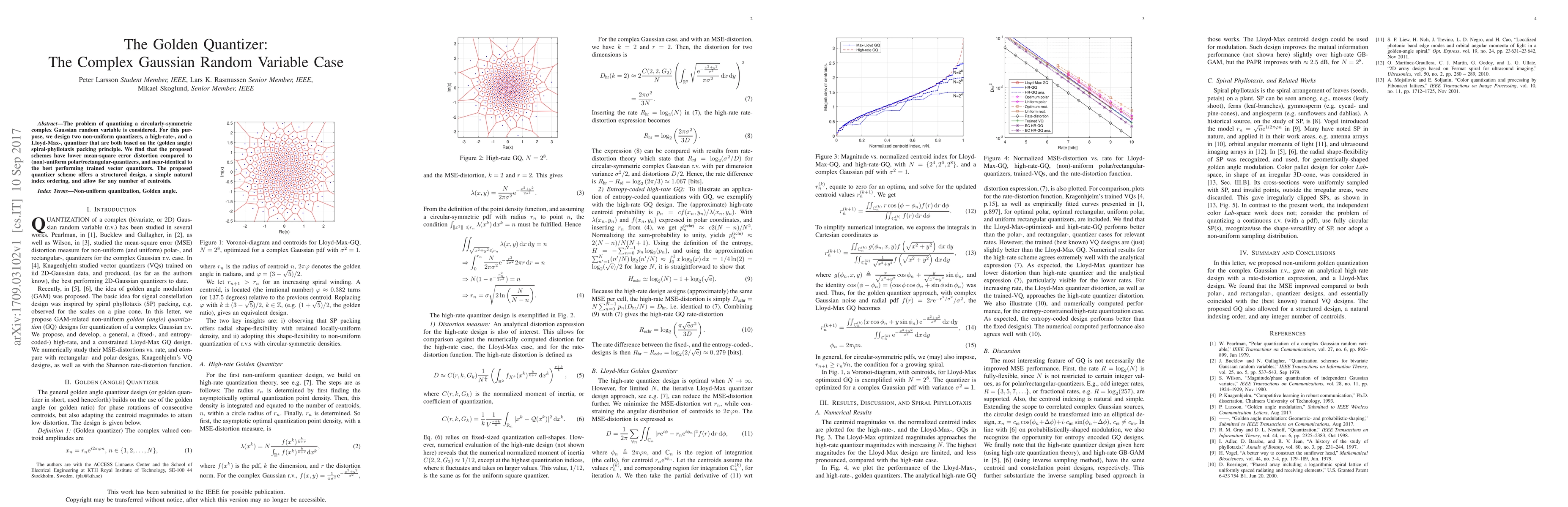 The problem of quantizing a circularly-symmetric complex Gaussian random variable is considered. For this purpose, we design two non-uniform quantizers, a high-rate-, and a Lloyd-Max-, quantizer that are both based on the (golden angle) spiral-phyllotaxis packing principle. We find that the proposed schemes have lower mean-square error distortion compared to (non)-uniform polar/rectangular-quantizers, and near-identical to the best performing trained vector quantizers. The proposed quantizer scheme offers a structured design, a simple natural index ordering, and allow for any number of centroids.