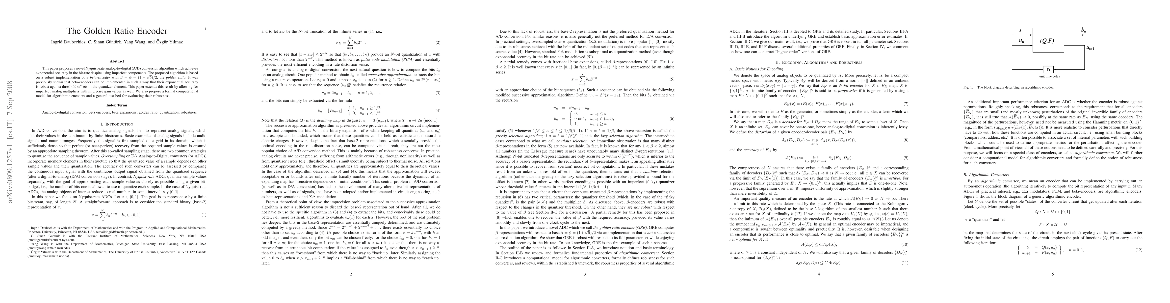 This paper introduces a novel Nyquist-rate A/D conversion algorithm based on a golden mean-based beta-encoder, achieving exponential accuracy despite component imperfections. It extends previous robustness results to include imprecise analog multipliers and proposes a computational model for evaluating encoder robustness.