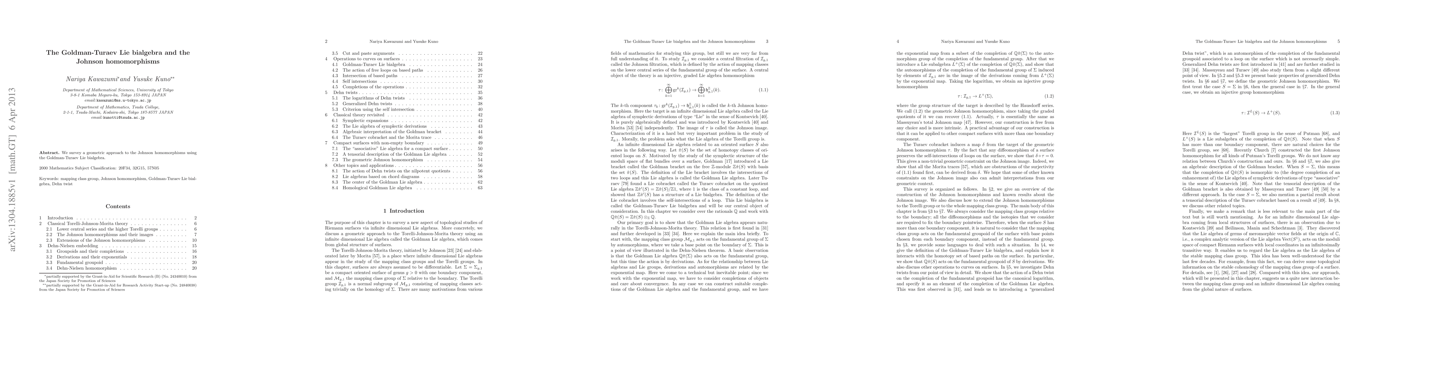 We survey a geometric approach to the Johnson homomorphisms using the Goldman-Turaev Lie bialgebra.