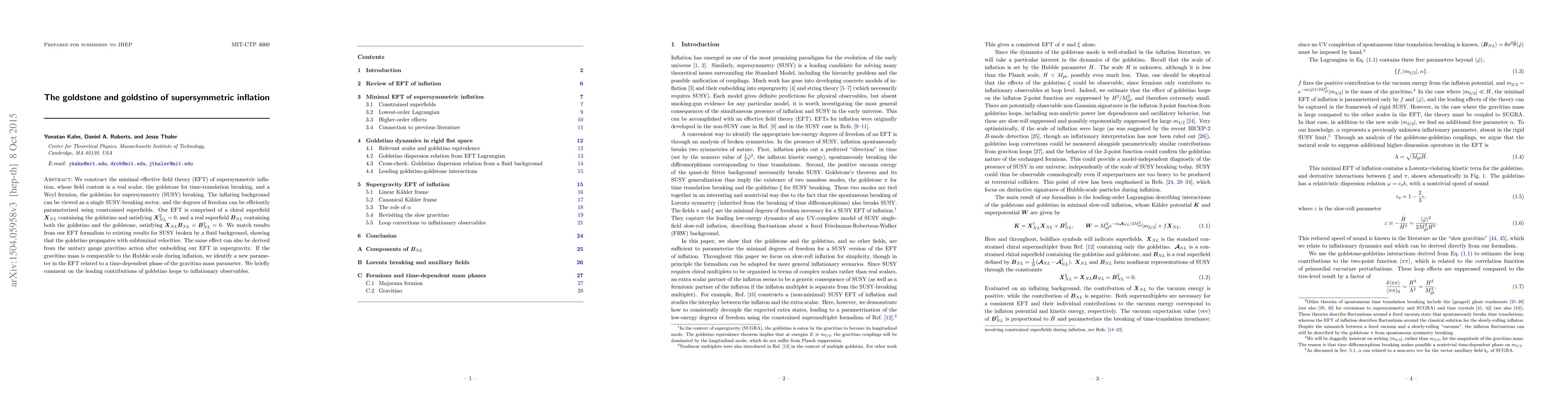 We construct the minimal effective field theory (EFT) of supersymmetric inflation, whose field content is a real scalar, the goldstone for time-translation breaking, and a Weyl fermion, the goldstino for supersymmetry (SUSY) breaking. The inflating background can be viewed as a single SUSY-breaking sector, and the degrees of freedom can be efficiently parameterized using constrained superfields. Our EFT is comprised of a chiral superfield X_NL containing the goldstino and satisfying X_NL^2 = 0, and a real superfield B_NL containing both the goldstino and the goldstone, satisfying X_NL B_NL = B_NL^3 = 0. We match results from our EFT formalism to existing results for SUSY broken by a fluid background, showing that the goldstino propagates with subluminal velocities. The same effect can also be derived from the unitary gauge gravitino action after embedding our EFT in supergravity. If the gravitino mass is comparable to the Hubble scale during inflation, we identify a new parameter in the EFT related to a time-dependent phase of the gravitino mass parameter. We briefly comment on the leading contributions of goldstino loops to inflationary observables.