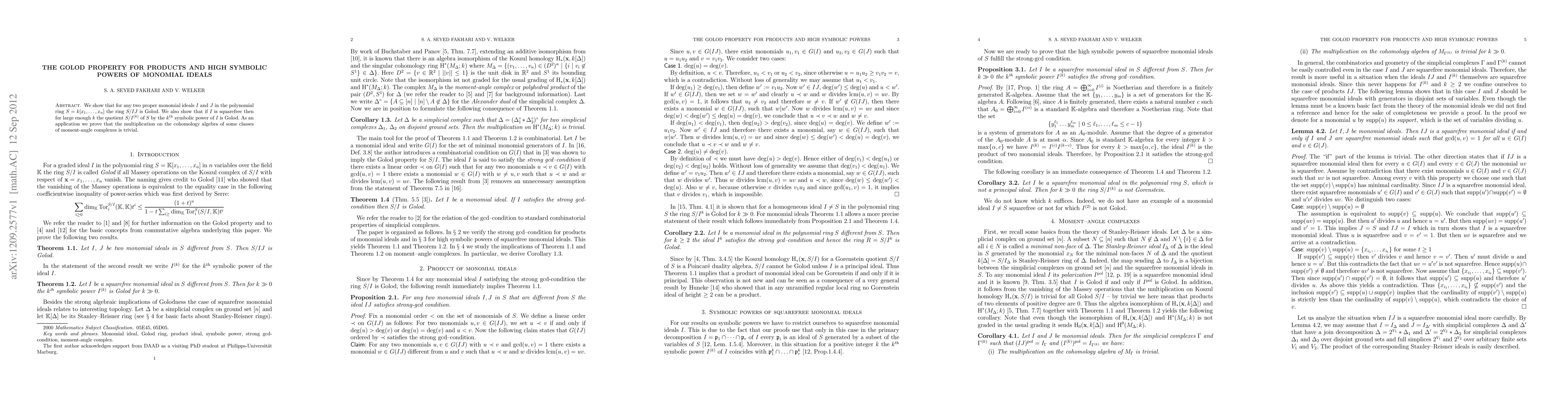 Researchers prove that certain quotient rings resulting from ideal divisions in polynomial rings exhibit Golod properties, leading to implications for cohomology algebras of specific geometric complexes.