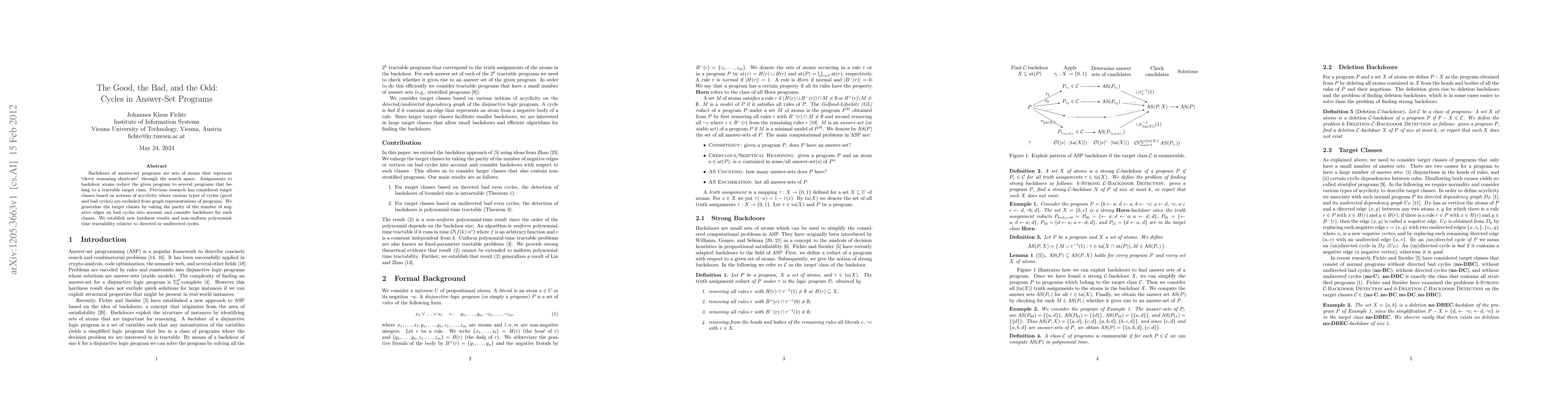 Backdoors of answer-set programs are sets of atoms that represent clever reasoning shortcuts through the search space. Assignments to backdoor atoms reduce the given program to several programs that belong to a tractable target class. Previous research has considered target classes based on notions of acyclicity where various types of cycles (good and bad cycles) are excluded from graph representations of programs. We generalize the target classes by taking the parity of the number of negative edges on bad cycles into account and consider backdoors for such classes. We establish new hardness results and non-uniform polynomial-time tractability relative to directed or undirected cycles.