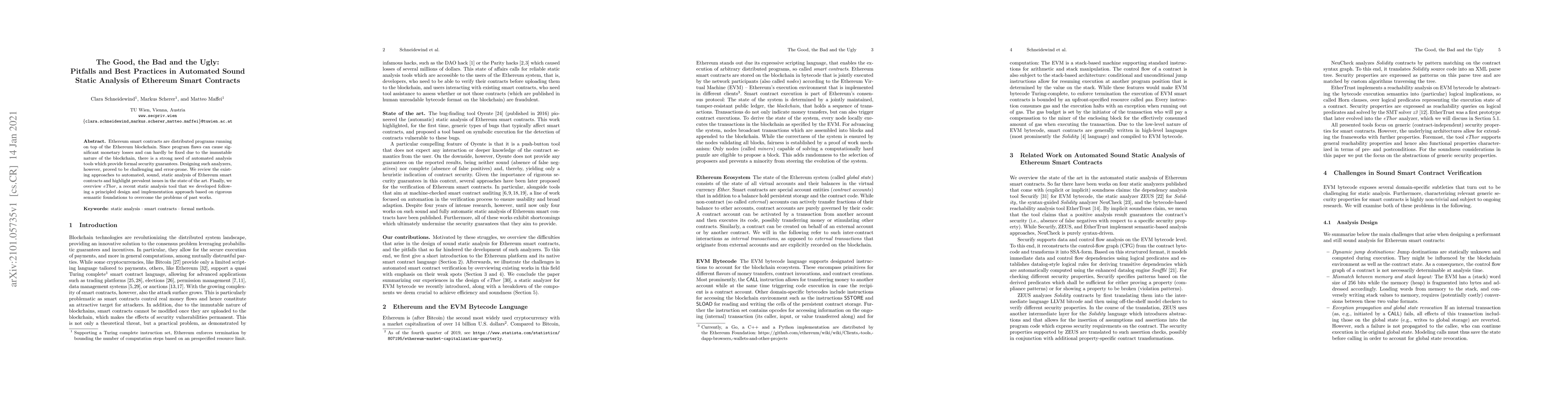 This paper reviews existing automated static analysis tools for Ethereum smart contracts, identifying their pitfalls and challenges. It introduces eThor, a new tool developed with a rigorous design to provide formal security guarantees and address the shortcomings of previous approaches.