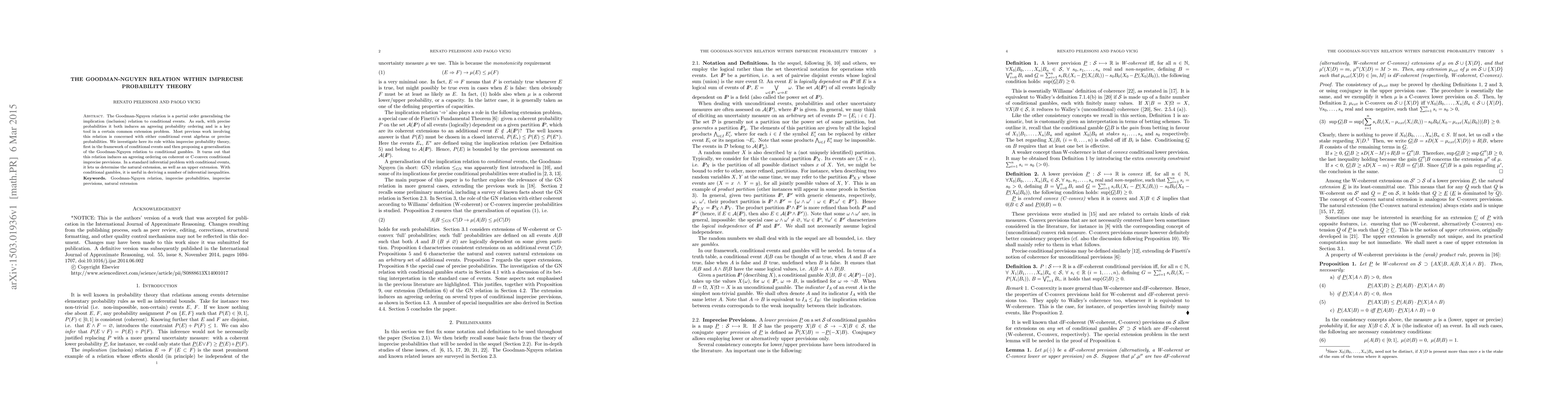 The Goodman-Nguyen relation is a partial order generalising the implication (inclusion) relation to conditional events. As such, with precise probabilities it both induces an agreeing probability ordering and is a key tool in a certain common extension problem. Most previous work involving this relation is concerned with either conditional event algebras or precise probabilities. We investigate here its role within imprecise probability theory, first in the framework of conditional events and then proposing a generalisation of the Goodman-Nguyen relation to conditional gambles. It turns out that this relation induces an agreeing ordering on coherent or C-convex conditional imprecise previsions. In a standard inferential problem with conditional events, it lets us determine the natural extension, as well as an upper extension. With conditional gambles, it is useful in deriving a number of inferential inequalities.