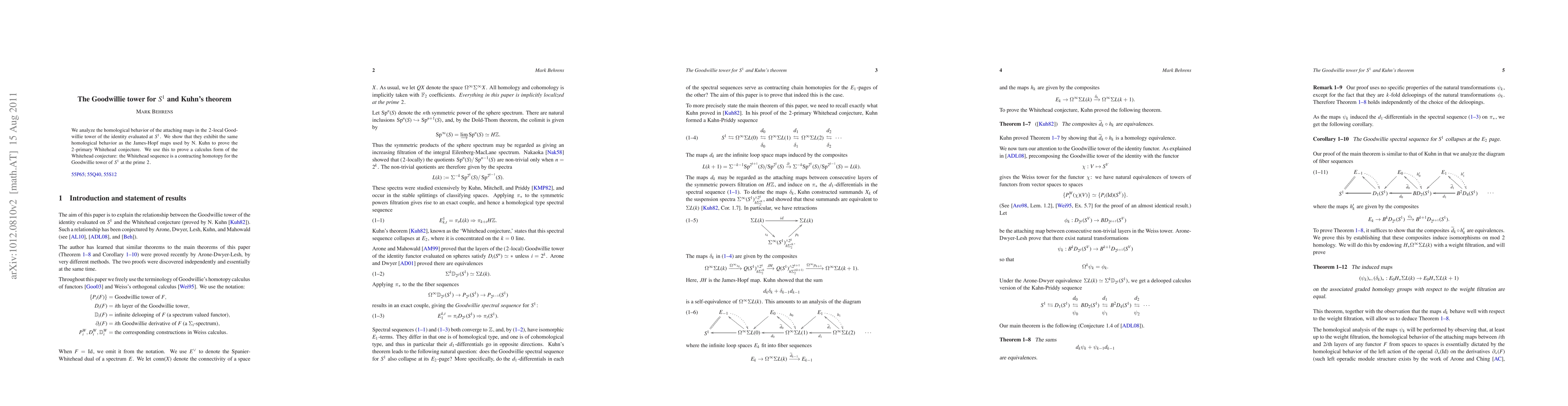 The paper investigates the homological behavior of the 2-local Goodwillie tower of the identity evaluated at S^1, demonstrating equivalence with Kuhn's James-Hopf maps, and proves a calculus form of the Whitehead conjecture for the 2-primary case.