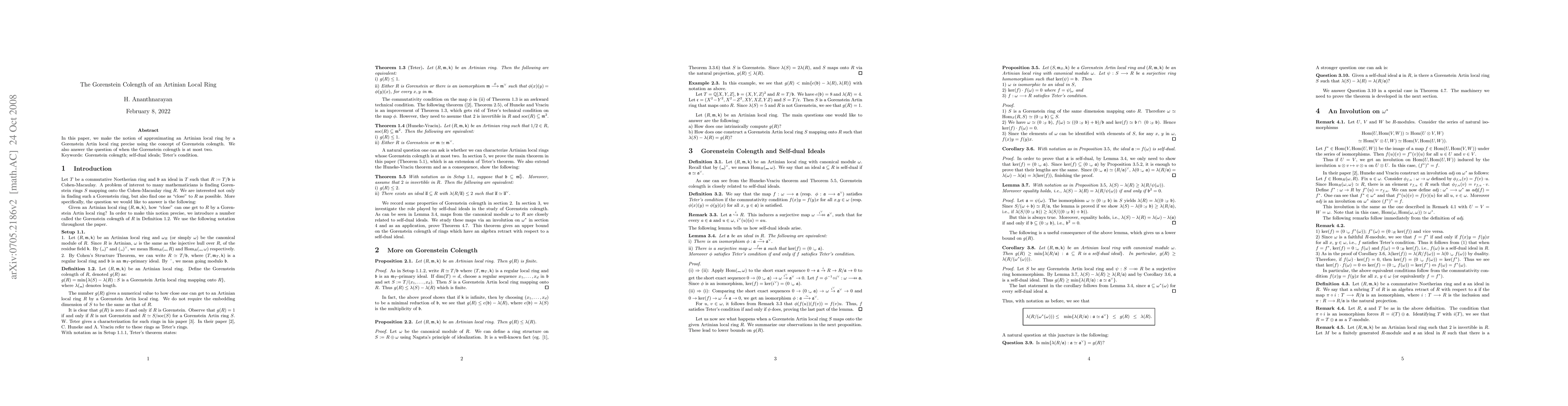 Summary: This paper defines the Gorenstein colength for Artinian local rings and explores how they can be approximated by Gorenstein rings. It specifically addresses conditions under which the Gorenstein colength is no more than two.
