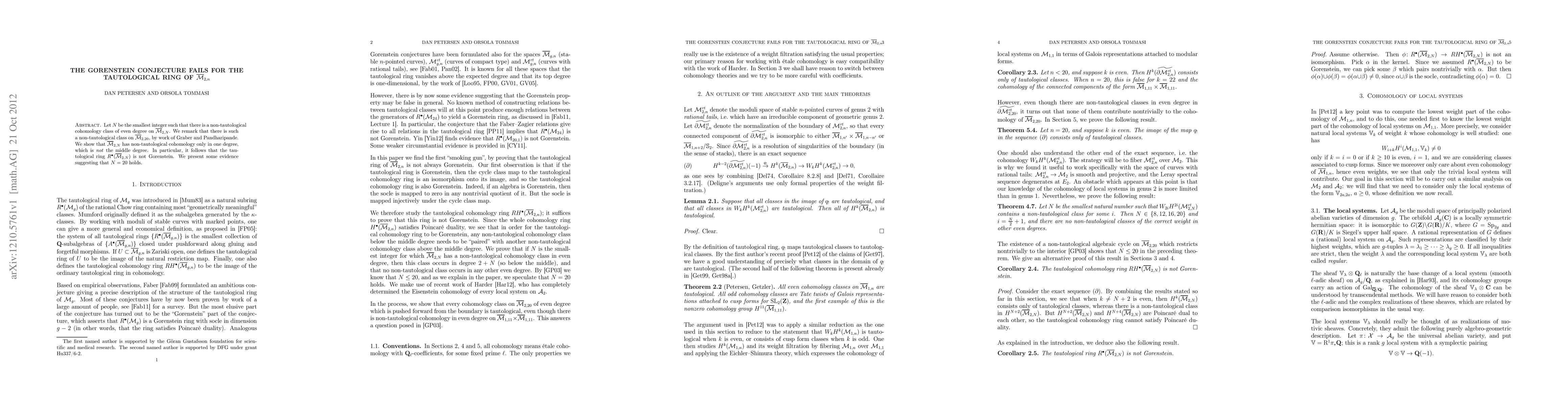 The Gorenstein conjecture is disproven for the tautological ring of $\mathcal{\bar M}_{2,n}$ as non-tautological cohomology appears only in a non-middle degree. Evidence indicates that the smallest $N$ with such a class is $N=20$.