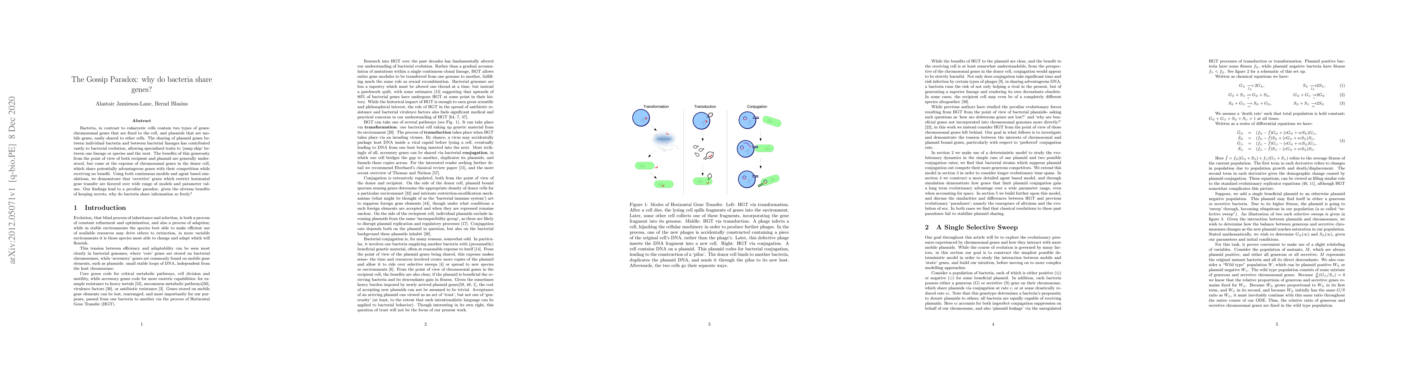 Bacteria share genes freely despite potential costs, as 'secretive' genes that restrict horizontal gene transfer are favored in various models and simulations. This paradox highlights the complexity of bacterial evolution and information sharing mechanisms.
