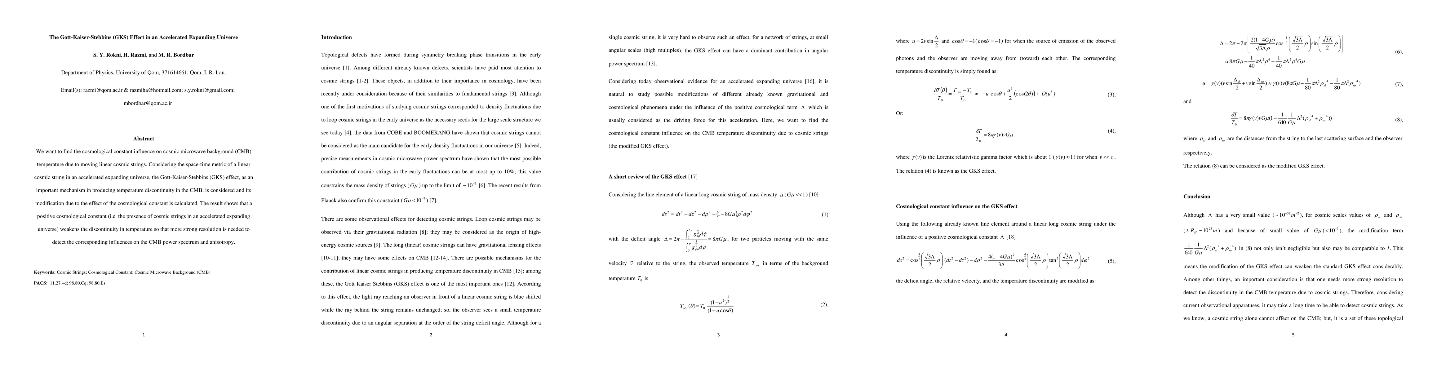 This paper investigates the influence of a cosmological constant on the Gott-Kaiser-Stebbins (GKS) effect in an accelerated expanding universe, finding that its presence weakens the temperature discontinuity in the cosmic microwave background (CMB) caused by moving linear cosmic strings. More precise measurements are required to detect these effects on the CMB power spectrum and anisotropy.